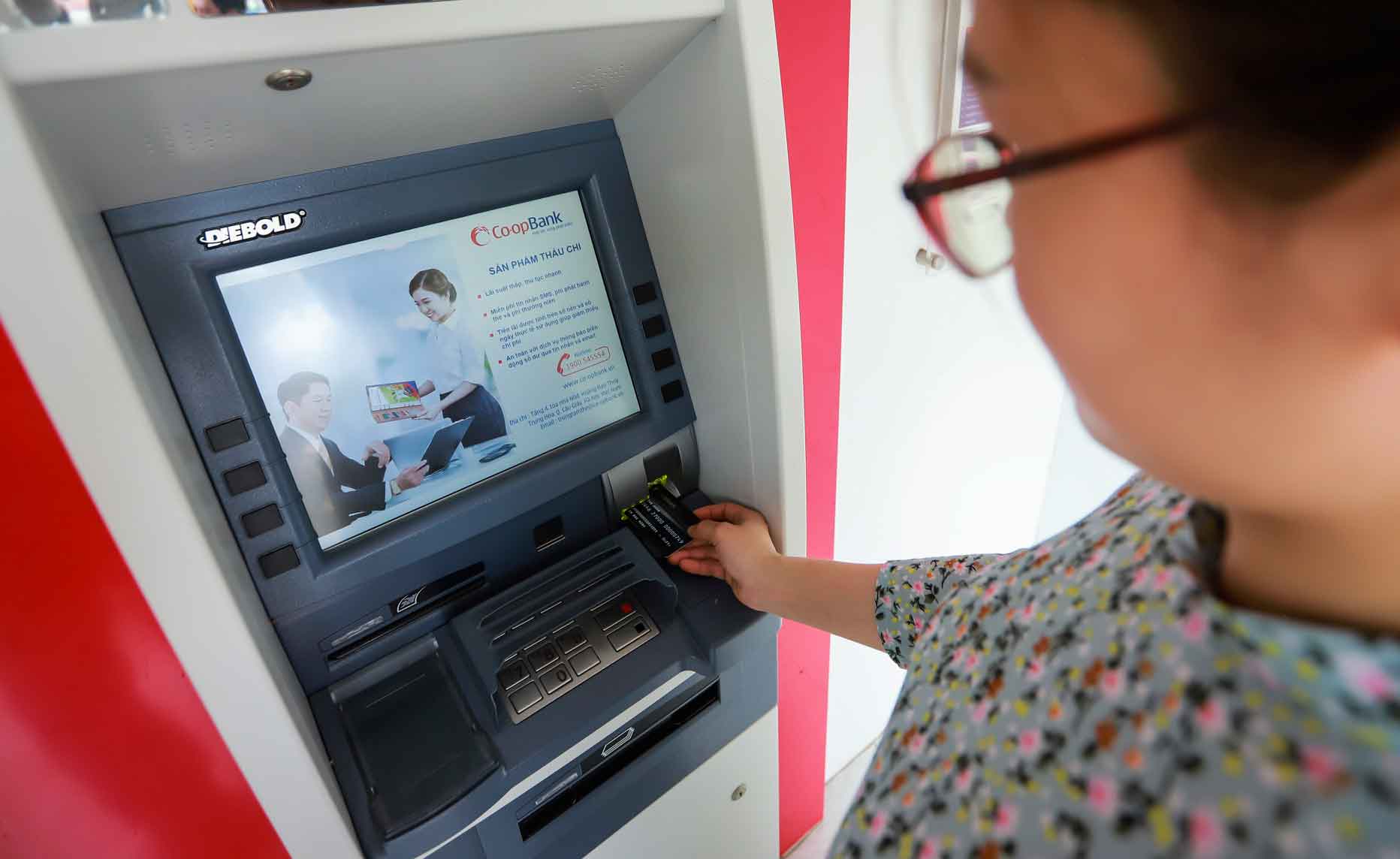 Khách hàng giao dịch tại máy rút tiền tự động của Ngân hàng Hợp tác xã Việt Nam.