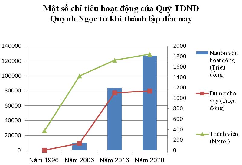 Kết quả kinh doanh của Quỹ TDND Quỳnh Ngọc cho thấy bước phát triển vượt bậc trong thời gian qua, nguồn vốn huy động tại chỗ luôn bảo đảm đáp ứng đủ nhu cầu vay vốn cho thành viên để phát triển sản xuất, kinh doanh. Từ nguồn vốn vay của Quỹ, các thành viên có điều kiện phát triển sản xuất, chăn nuôi, kinh doanh dịch vụ, mua sắm phương tiện vận tải, chuyển đổi cơ cấu cây trồng, vật nuôi, phát triển trang trại, gia trại... Đặc biệt, thời gian qua, Quỹ TDND Quỳnh Ngọc còn ưu tiên nguồn vốn cho 20 khách hàng vay vốn phát triển nghề nuôi cá lồng với tổng dư nợ cho vay hơn 10 tỷ đồng, đóng góp tích cực vào việc đưa xã Quỳnh Ngọc trở thành địa phương điển hình của tỉnh về phát triển mô hình nuôi cá lồng trên sông.