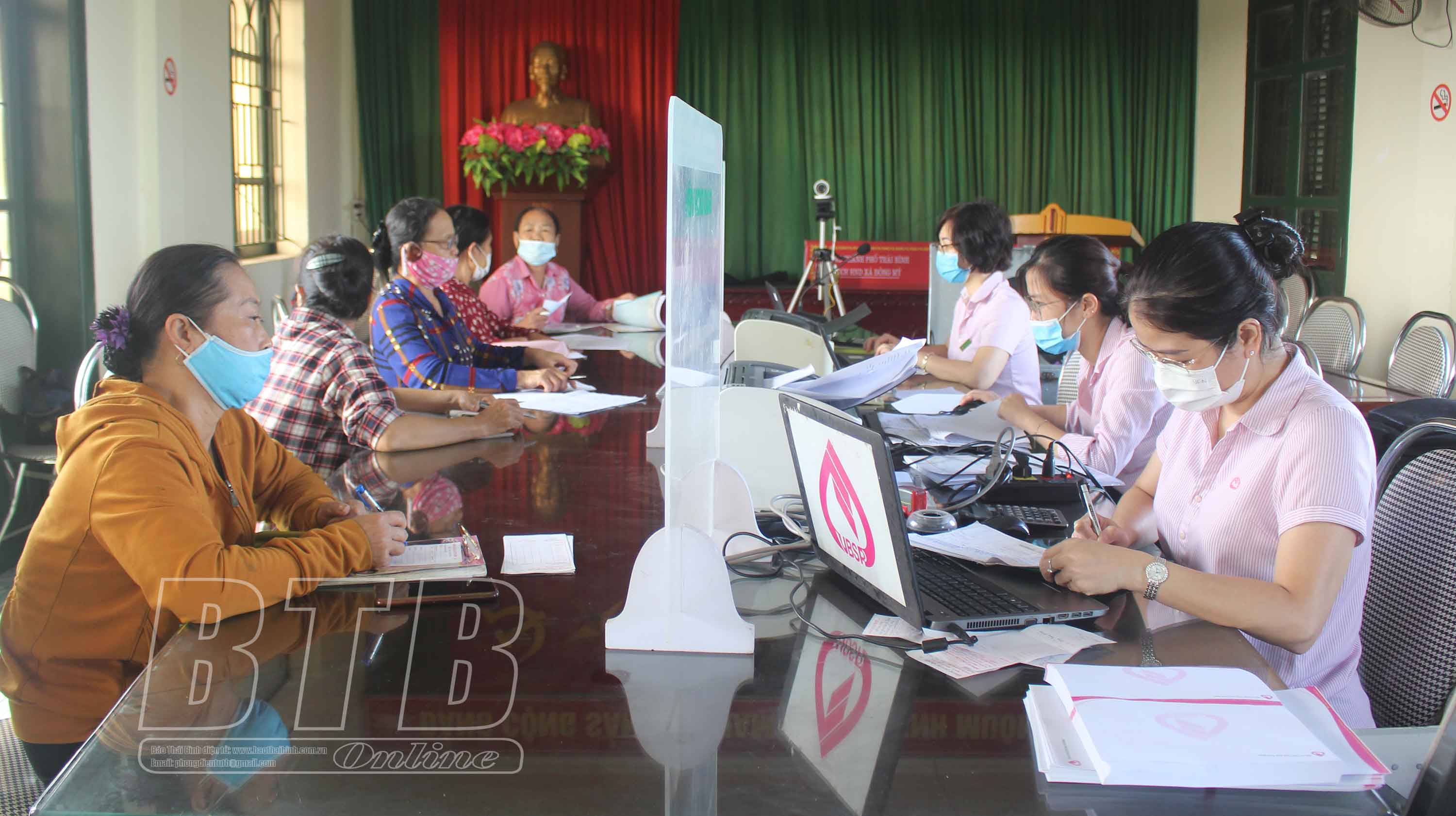Hoạt động giao dịch của Ngân hàng CSXH tại xã Đông Mỹ (thành phố Thái Bình).