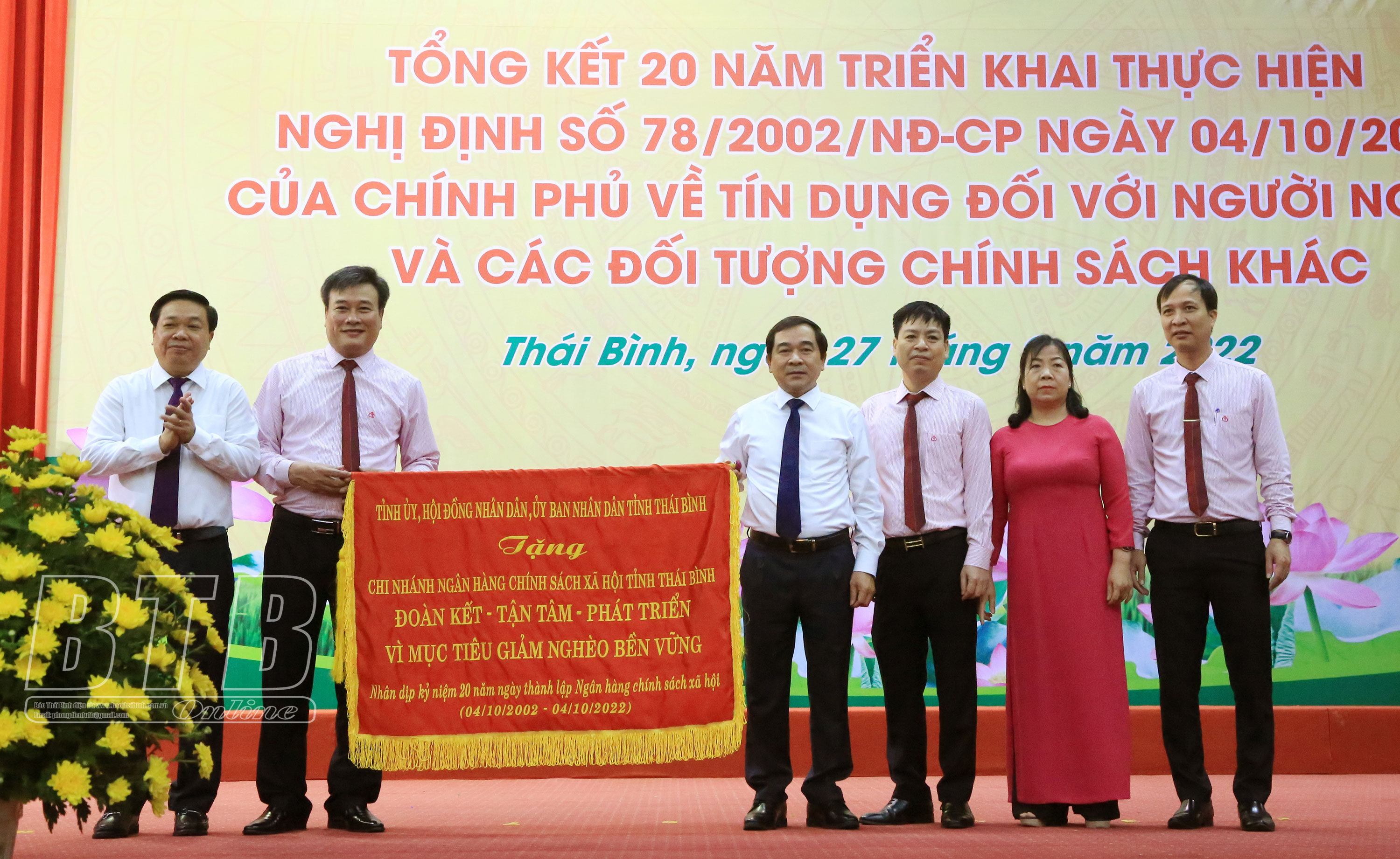 Phát biểu tại hội nghị, đồng chí Lương Quốc Đoàn, Ủy viên Ban Chấp hành Trung ương Đảng, Chủ tịch Hội Nông dân Việt Nam, Ủy viên HĐQT Ngân hàng CSXH và đồng chí Nguyễn Khắc Thận, Phó Bí thư Tỉnh ủy, Chủ tịch UBND tỉnh biểu dương và đánh giá cao những kết quả Ngân hàng CSXH Chi nhánh tỉnh Thái Bình đạt được trong 20 năm qua.