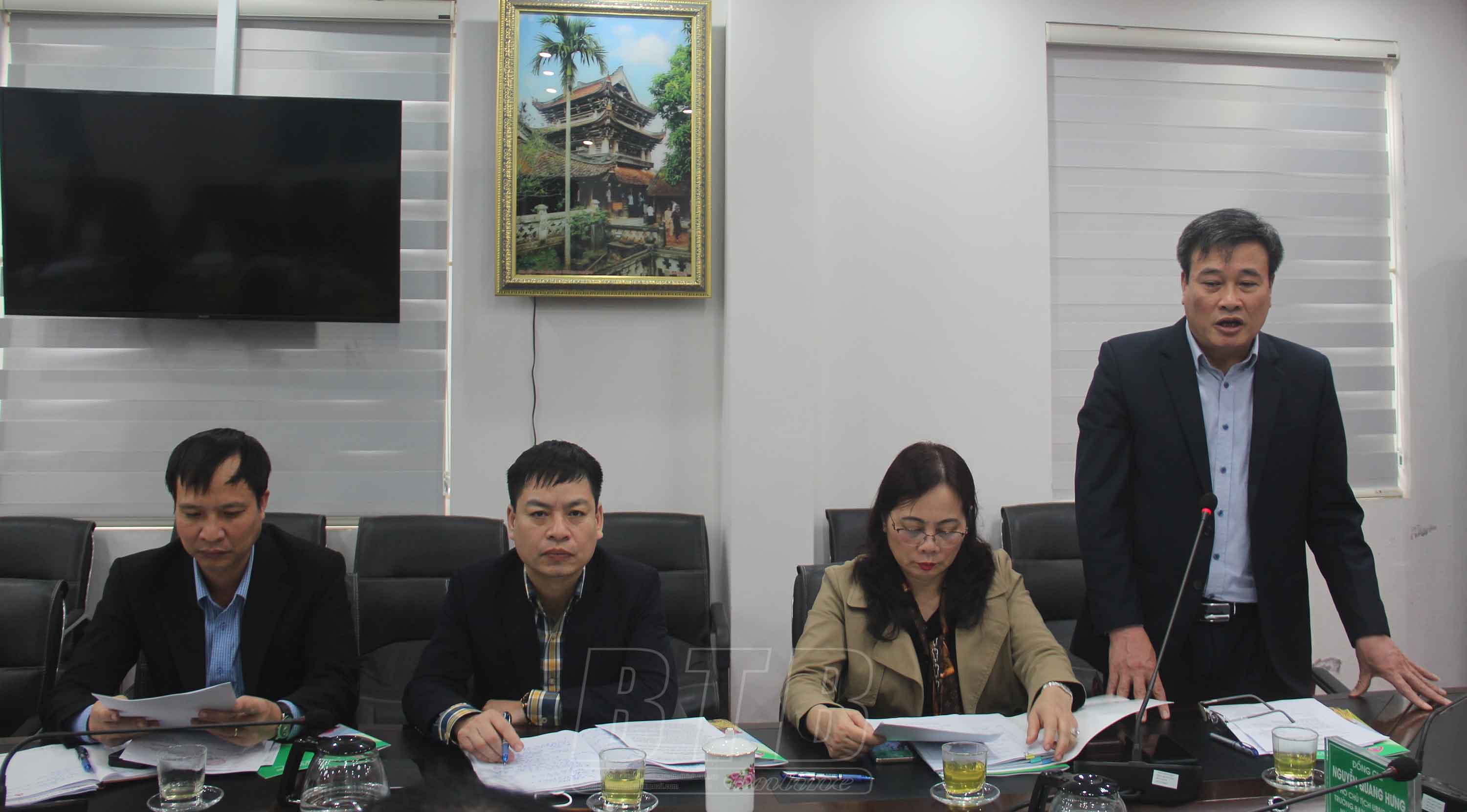 Lãnh đạo Ngân hàng CSXH chi nhánh tỉnh báo cáo tại cuộc họp.