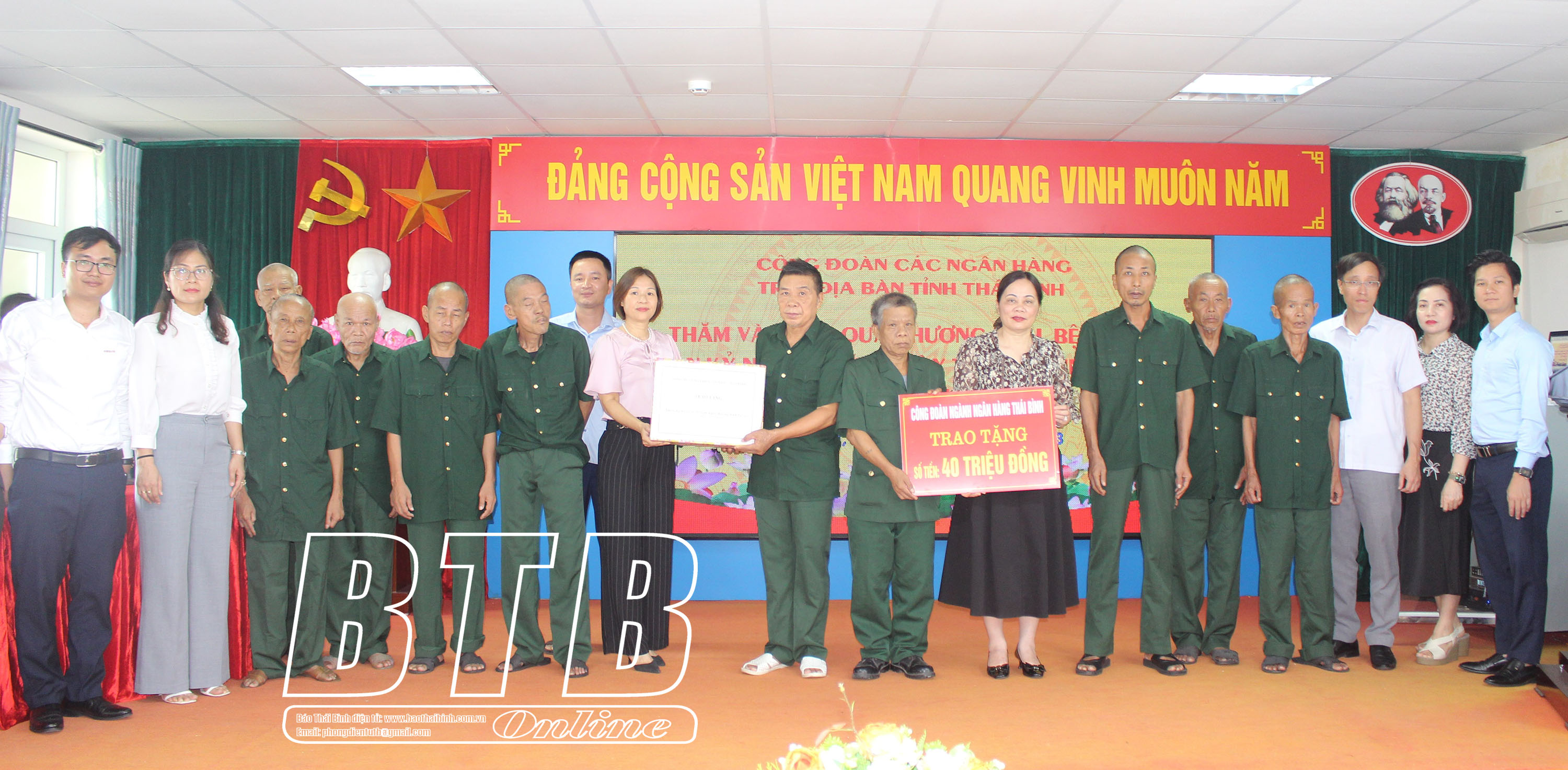 Đoàn đến thăm, tặng quà thương binh, bệnh binh tại Trung tâm Nuôi dưỡng và Điều dưỡng người có công tỉnh Thái Bình số tiền 20 triệu đồng; Trung tâm Chăm sóc và Phục hồi chức năng cho người tâm thần số tiền 40 triệu đồng. Đại diện Công đoàn Ngân hàng Việt Nam tại Thái Bình gửi lời tri ân, chúc sức khỏe tới các thương binh, bệnh binh và mong các thương binh, bệnh binh nỗ lực vượt qua nỗi đau của bệnh tật để vươn lên trong cuộc sống.