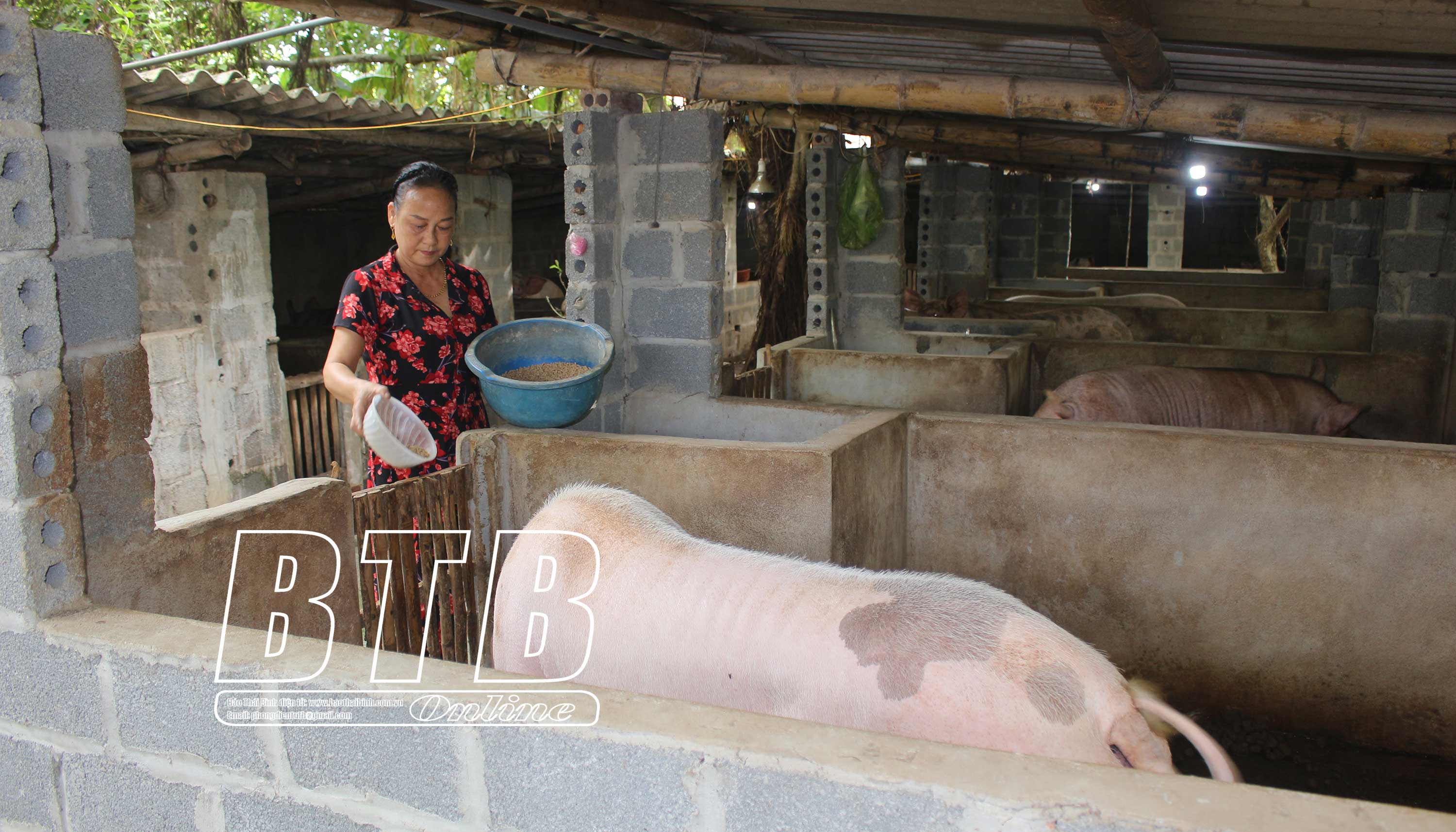 Gia đình ông Lê Thanh Kiểm (thôn Nghĩa Hồng, xã Tân Học) phát triển chăn nuôi lợn từ nguồn vốn của Quỹ TDND Thái Tân.