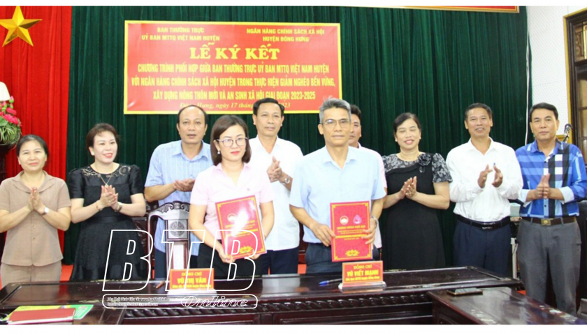 Tại hội nghị, đại diện Ủy ban MTTQ huyện và Ngân hàng Chính sách xã hội huyện đã ký kết chương trình phối hợp giai đoạn 2023 - 2025.