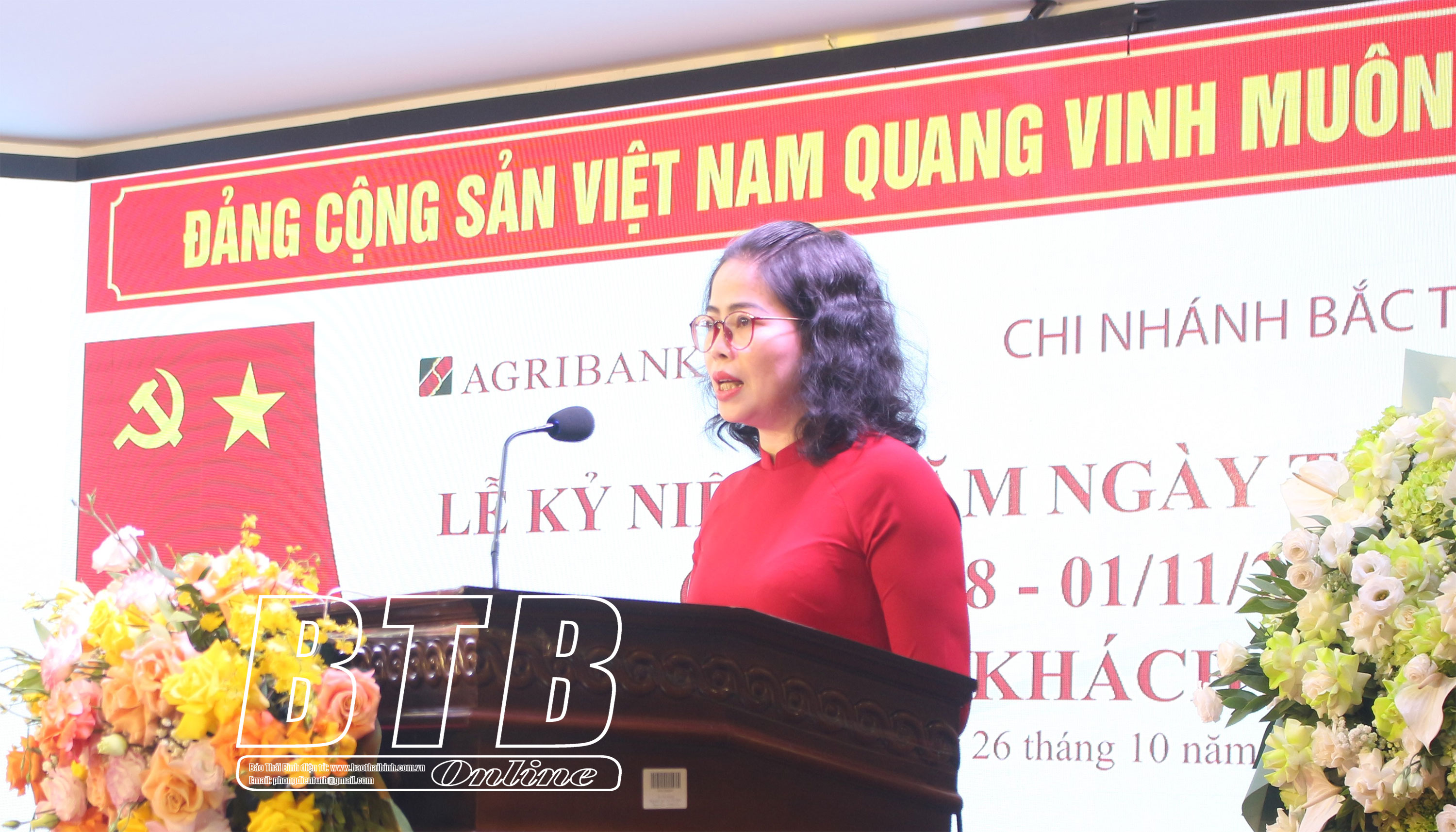 Đại diện Agribank Chi nhánh Bắc Thái Bình đọc diễn văn kỷ niệm.