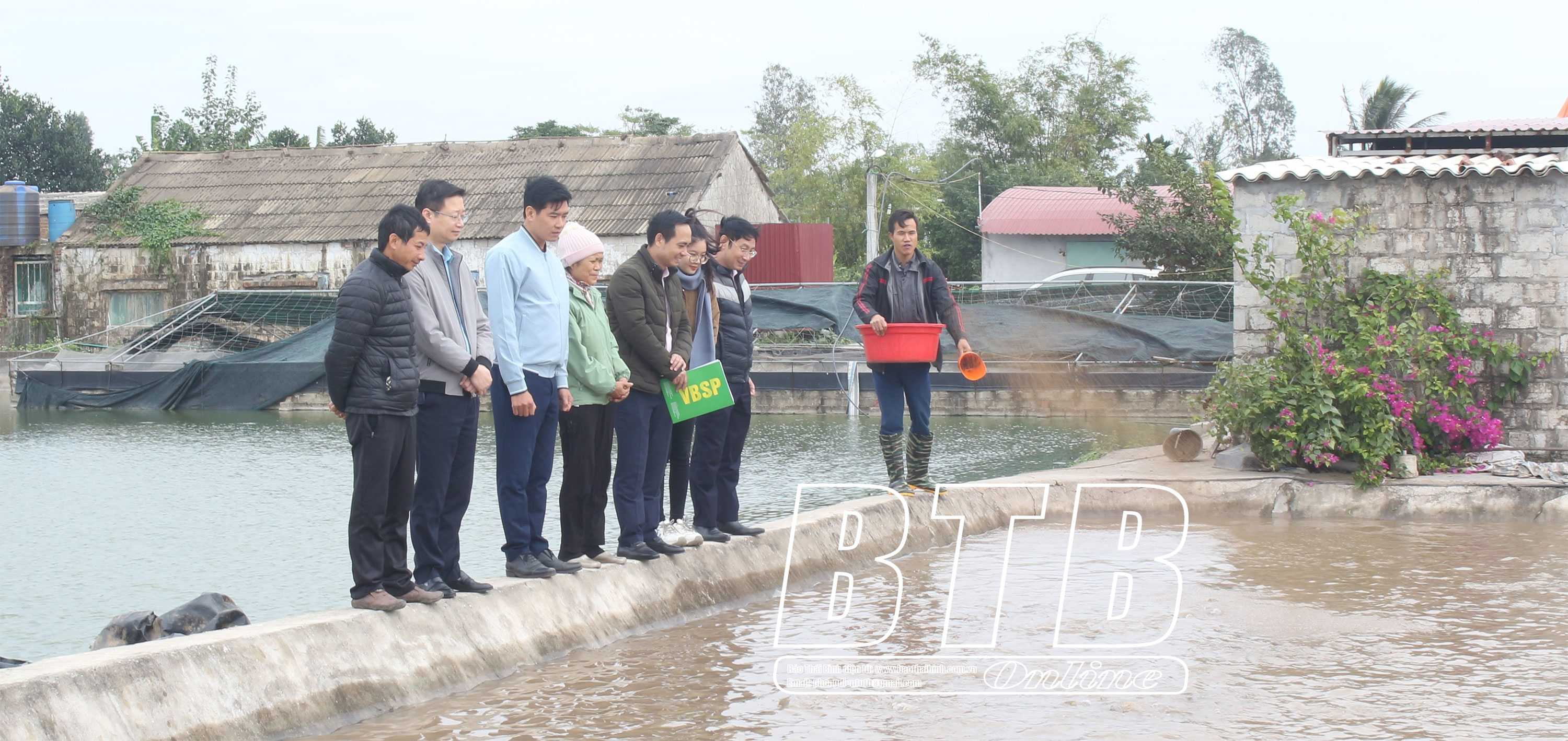 Lãnh đạo UBND huyện và Phòng giao dịch Ngân hàng CSXH huyện Hưng Hà kiểm tra việc sử dụng vốn vay của gia đình ông Nguyễn Văn Hình (thôn Bùi Việt, xã Duyên Hải).