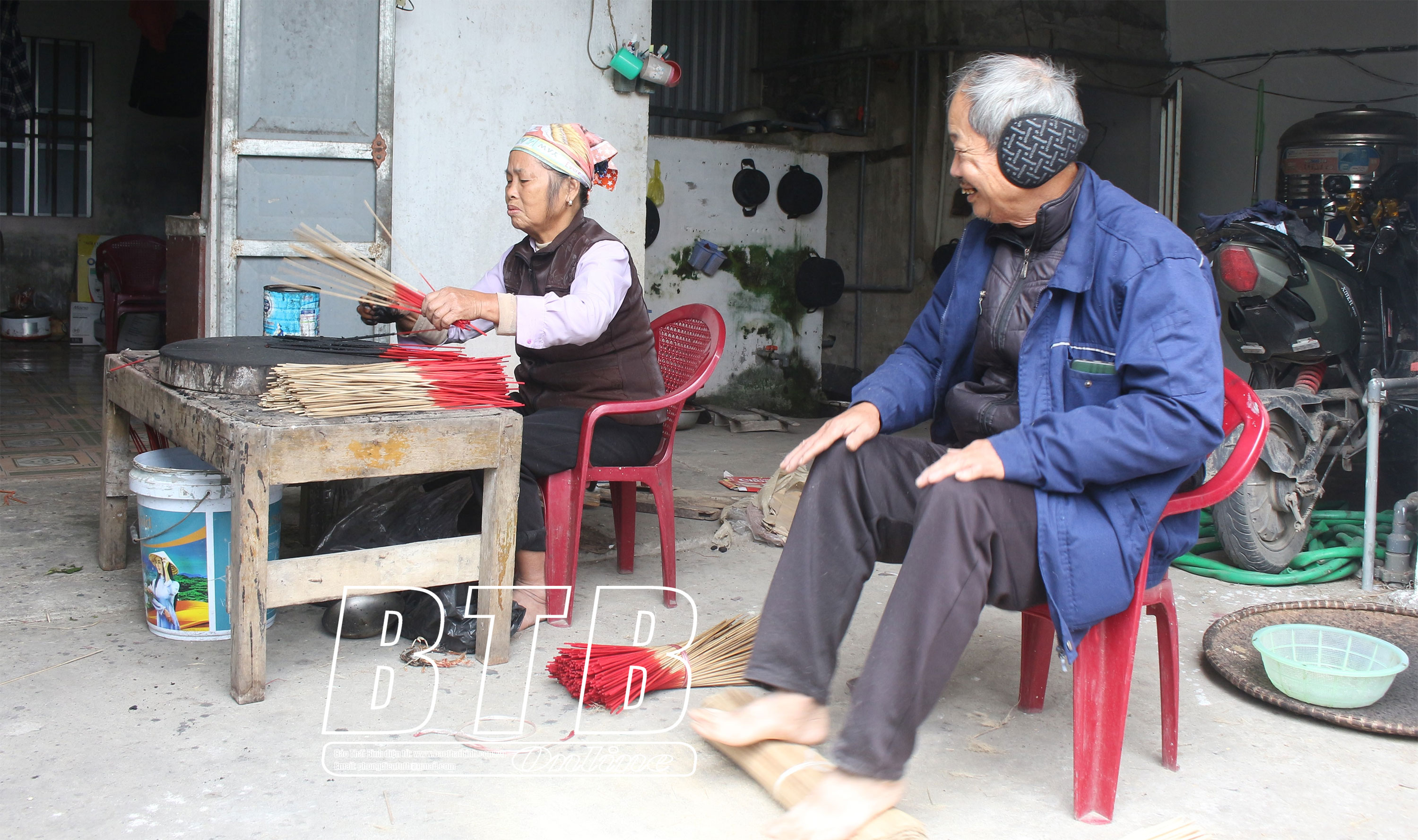 Gia đình ông Phùng Văn Ba, thôn Văn Quan, xã Duyên Hải (Hưng Hà) phát triển nghề làm hương truyền thống từ vốn vay ưu đãi của Chính phủ.