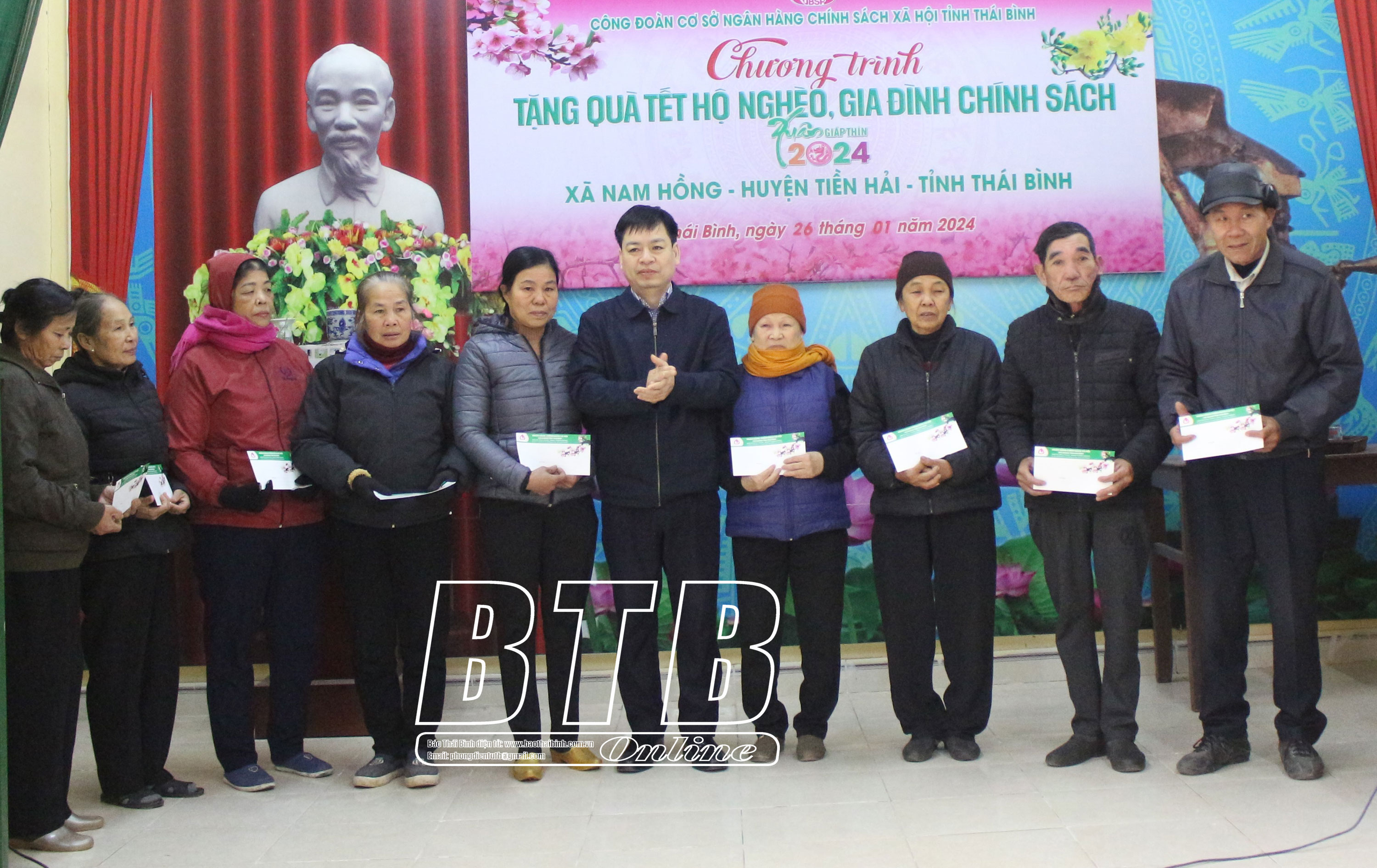 Nhân dịp tết Nguyên đán Giáp Thìn 2024, ngoài 3 xã trên, Công đoàn cơ sở Ngân hàng CSXH tỉnh còn trao 100 suất quà cho hộ nghèo, hộ cận nghèo và gia đình chính sách xã Tân Lễ và thị trấn Hưng Nhân (Hưng Hà). Đây là hoạt động thường niên mỗi dịp tết đến, xuân về của Công đoàn cơ sở Ngân hàng CSXH tỉnh. Món quà tuy nhỏ nhưng có giá trị tinh thần rất lớn nhằm động viên hộ nghèo, hộ cận nghèo và gia đình chính sách trên địa bàn các xã, thị trấn vượt qua khó khăn để vươn lên trong cuộc sống, từ đó vui đón tết đầm ấm, hạnh phúc.