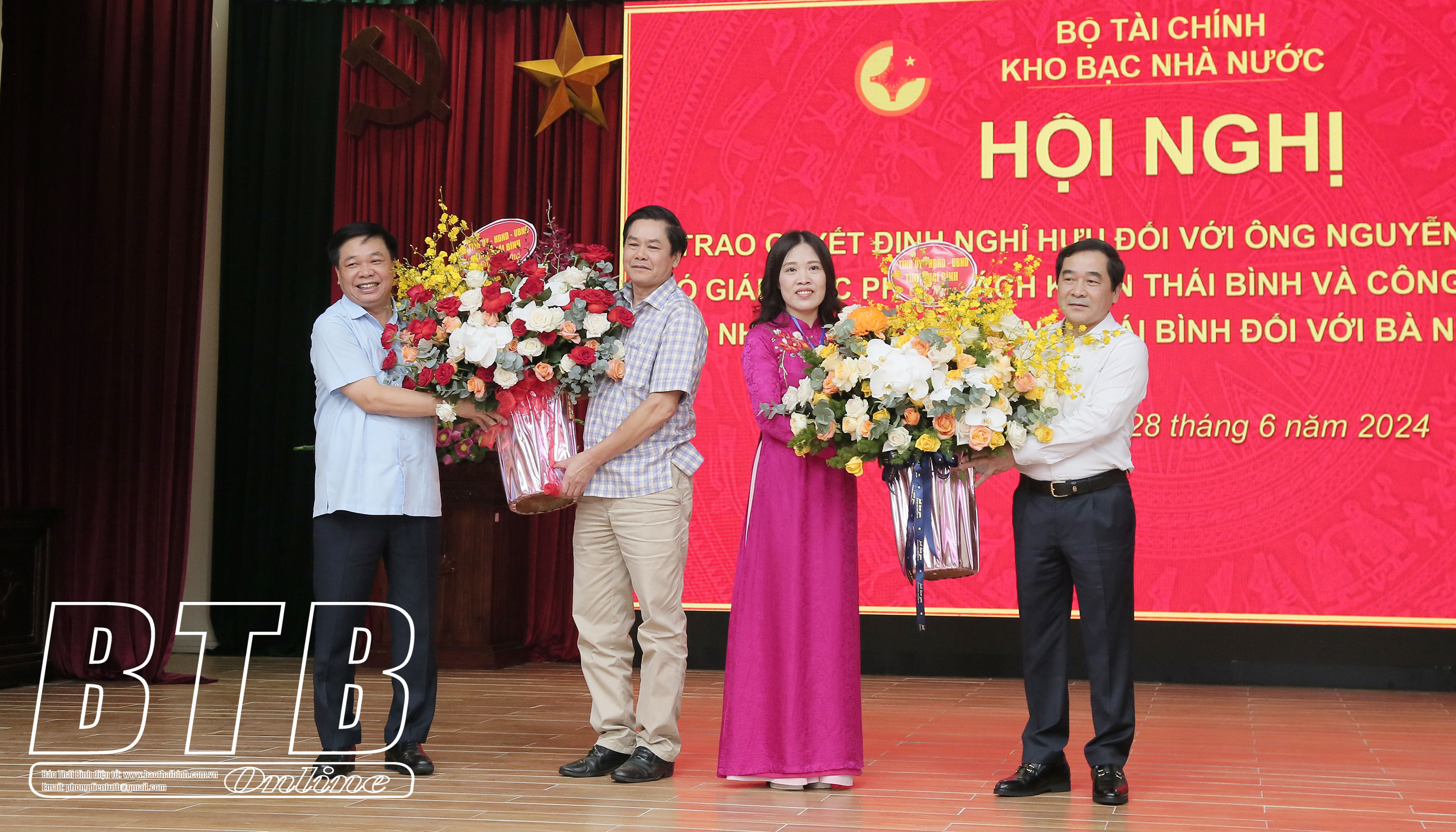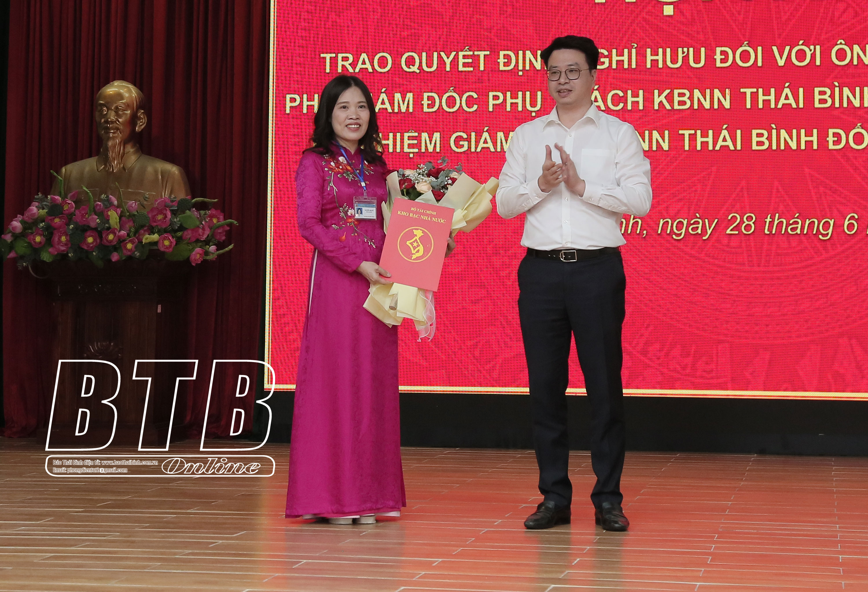 Tại hội nghị, KBNN đã công bố quyết định nghỉ hưu đối với đồng chí Nguyễn Trung Kiên, Phó Giám đốc phụ trách KBNN Thái Bình; đồng thời công bố quyết định bổ nhiệm đồng chí Nguyễn Thị Hải, Phó Giám đốc KBNN Thái Bình giữ chức vụ Giám đốc KBNN Thái Bình.