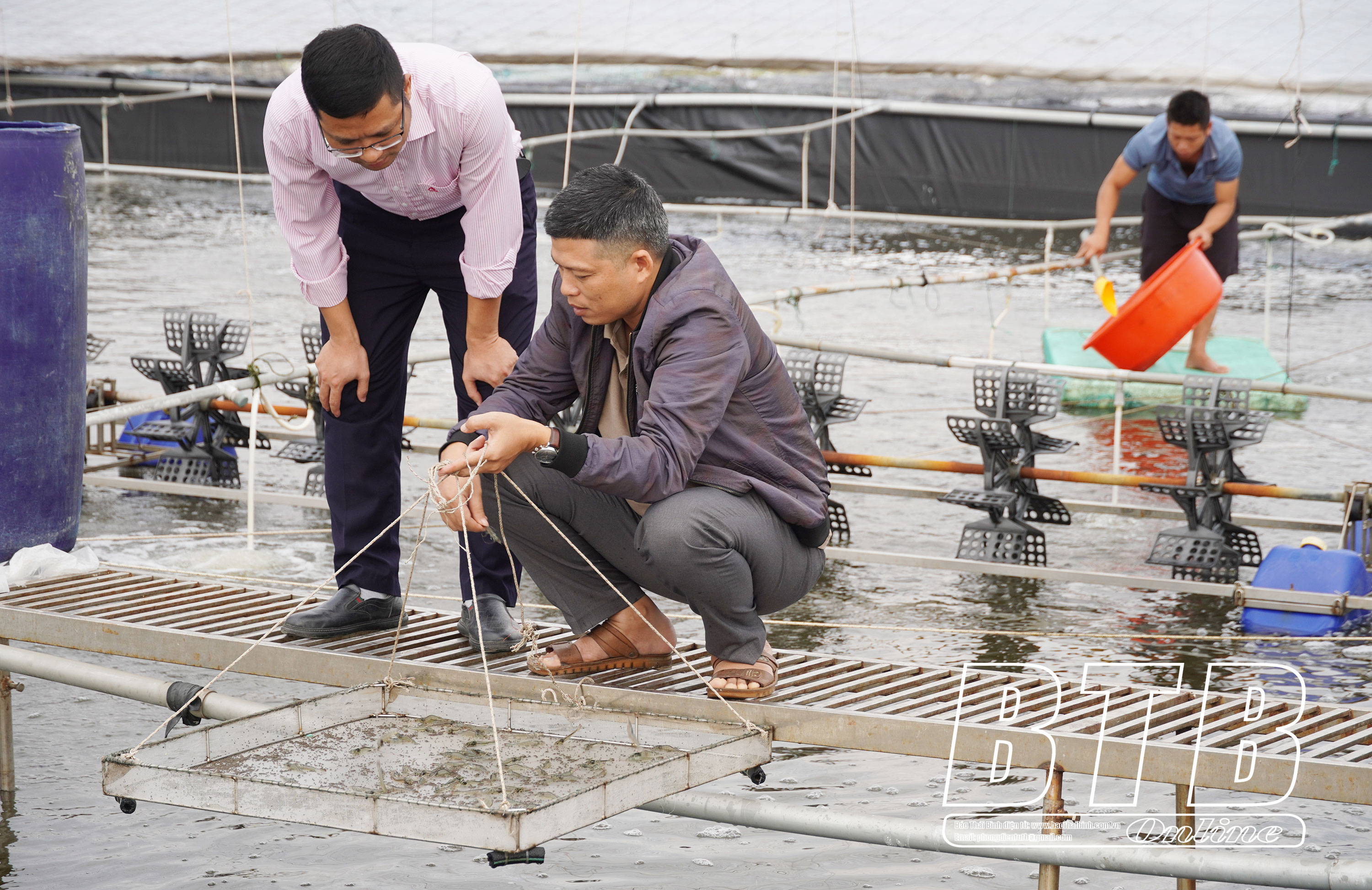 Nhờ nguồn vốn tín dụng chính sách của Phòng giao dịch Ngân hàng CSXH huyện Thái Thụy, anh Vũ Văn Của, thôn Bạch Đằng, xã Thái Thượng phát triển mô hình nuôi tôm công nghệ cao.