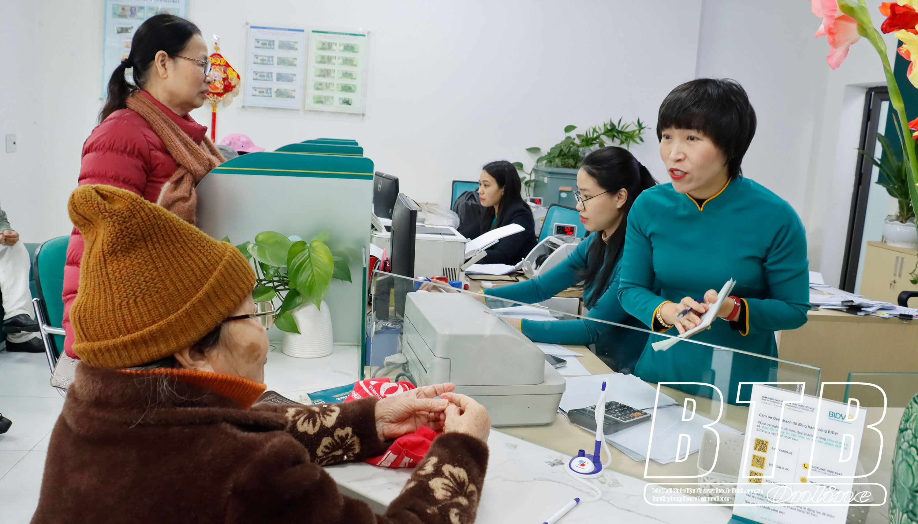 Cán bộ tín dụng Ngân hàng BIDV chi nhánh Thái Bình hướng dẫn khách hàng làm thủ tục gửi tiền.