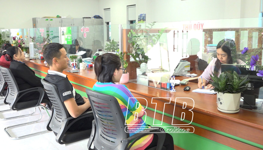 Khách hàng thực hiện thủ tục tại Phòng giao dịch Ngân hàng Chính sách xã hội huyện Đông Hưng.