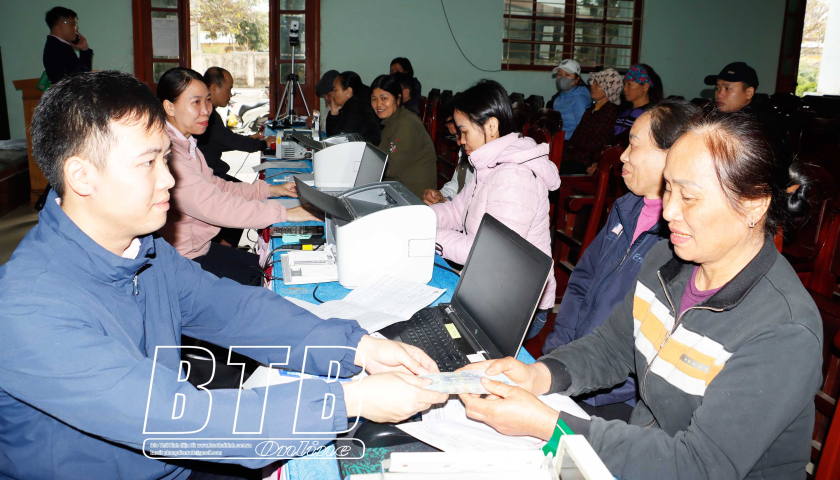 Phòng giao dịch Ngân hàng Chính sách xã hội huyện Thái Thụy giải ngân tại xã Thụy Bình.