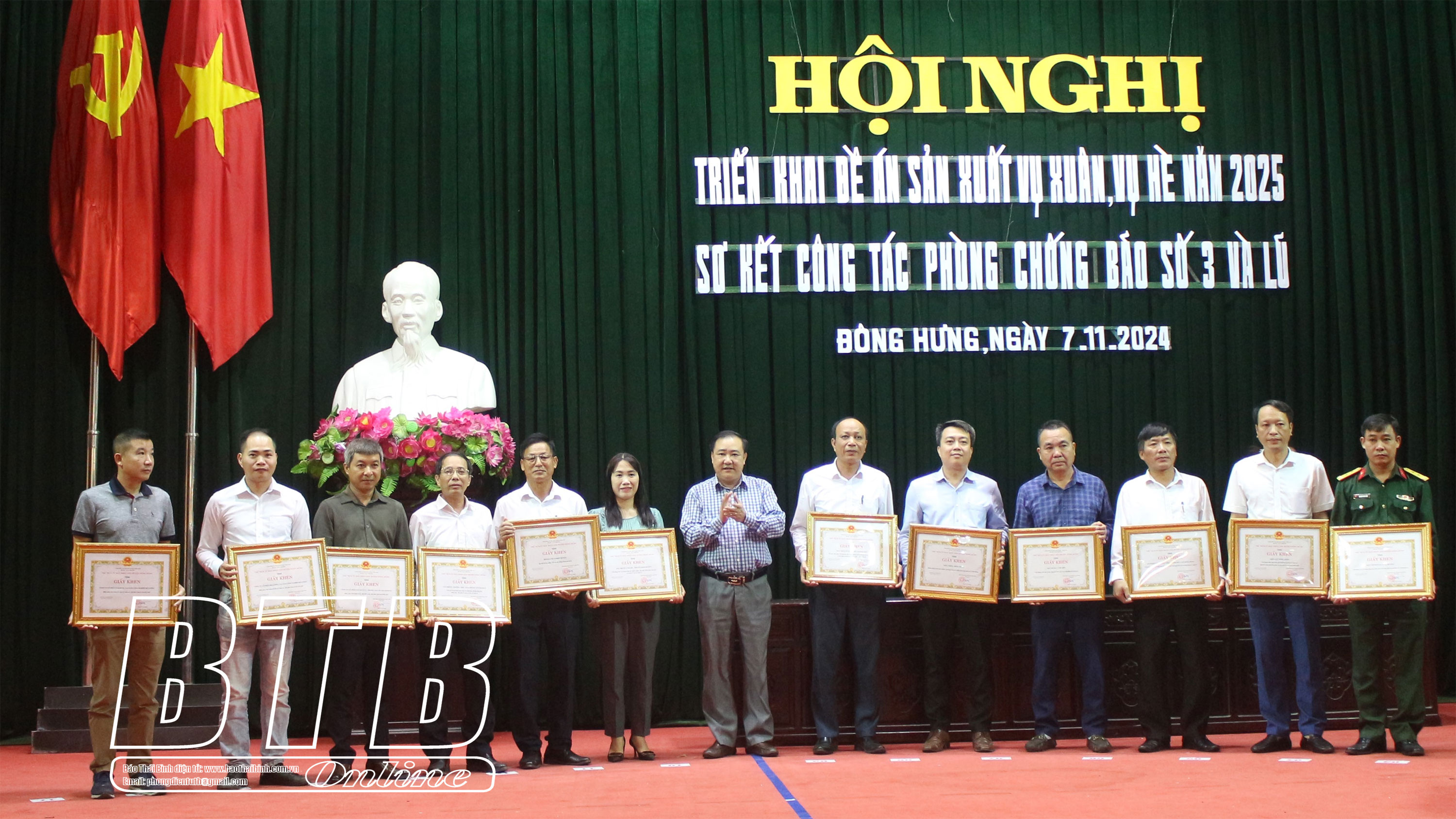Cũng tại hội nghị, UBND huyện Đông Hưng tổ chức sơ kết, khen thưởng 33 tập thể có thành tích xuất sắc trong công tác phòng, chống bão số 3 và mưa, lũ.