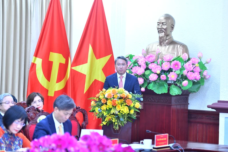 Đồng chí Nguyễn Hải Ninh, Bí thư Ban cán sự đảng, Bộ trưởng Tư pháp phát biểu tại buổi làm việc. (Ảnh: ĐĂNG KHOA).