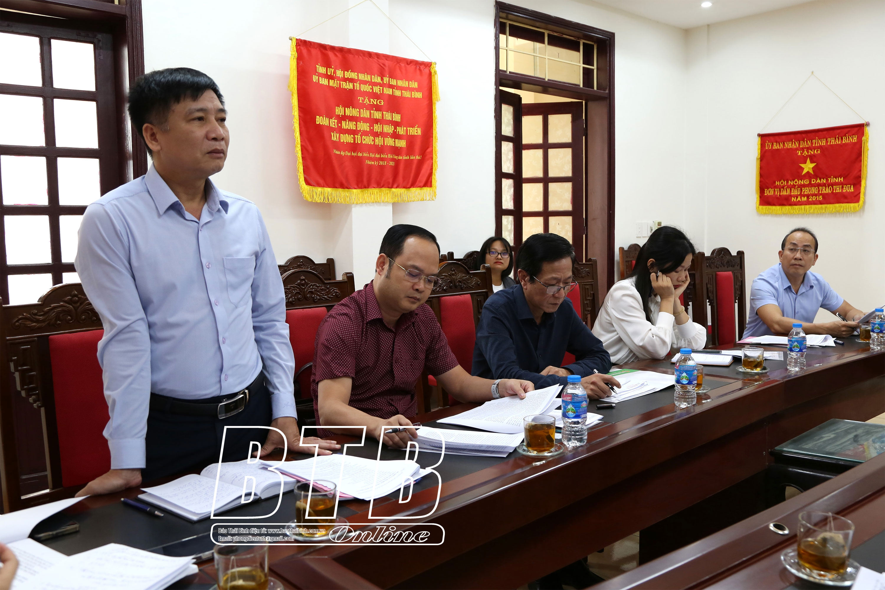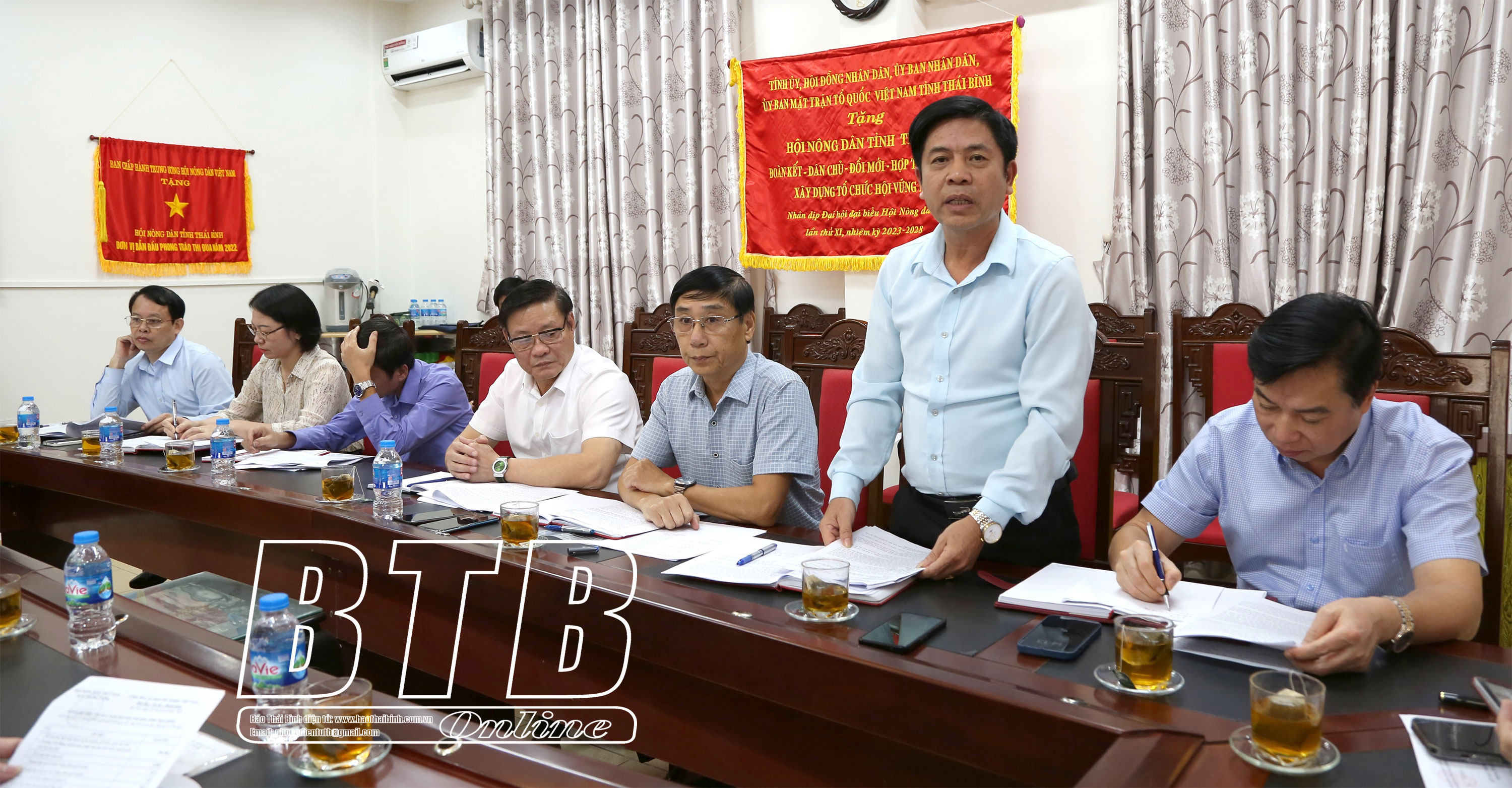 Cán bộ đoàn kiểm tra Trung ương Hội Nông dân Việt Nam đóng góp ý kiến công tác xây dựng hội và phong trào nông dân tại Thái Bình.