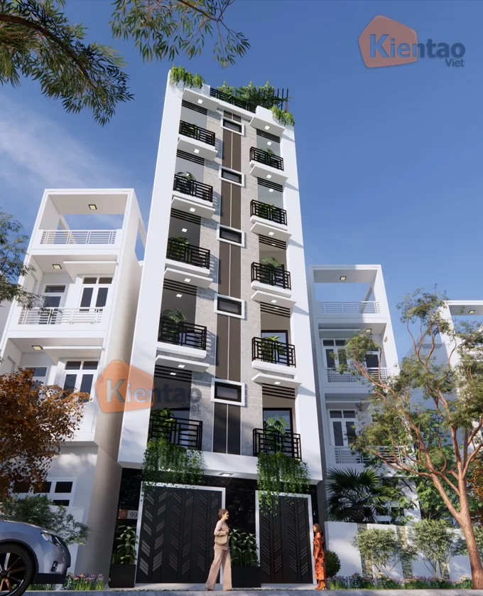 Phối cảnh nhà ống chung cư mini 7 Tầng 6.1x23m.