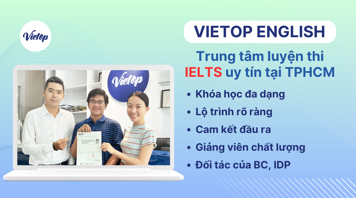 Nếu bạn quan tâm đến việc luyện thi IELTS cấp tốc tại trung tâm uy tín, Vietop English luôn sẵn sàng hỗ trợ tư vấn miễn phí, giúp bạn chọn lựa khóa học phù hợp nhất. Đừng bỏ lỡ cơ hội học tập tại một trong những trung tâm luyện thi hàng đầu, hãy liên hệ Vietop English ngay hôm nay để bắt đầu hành trình chinh phục IELTS của bạn!