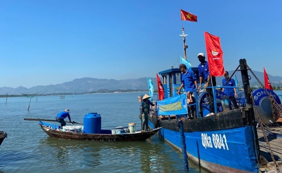 Chương trình "Đưa nước sạch ra đảo" được Huyện đoàn Núi Thành tổ chức (ảnh Huyện đoàn Núi Thành cung cấp)