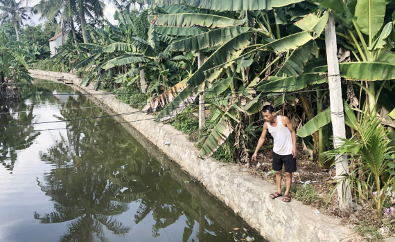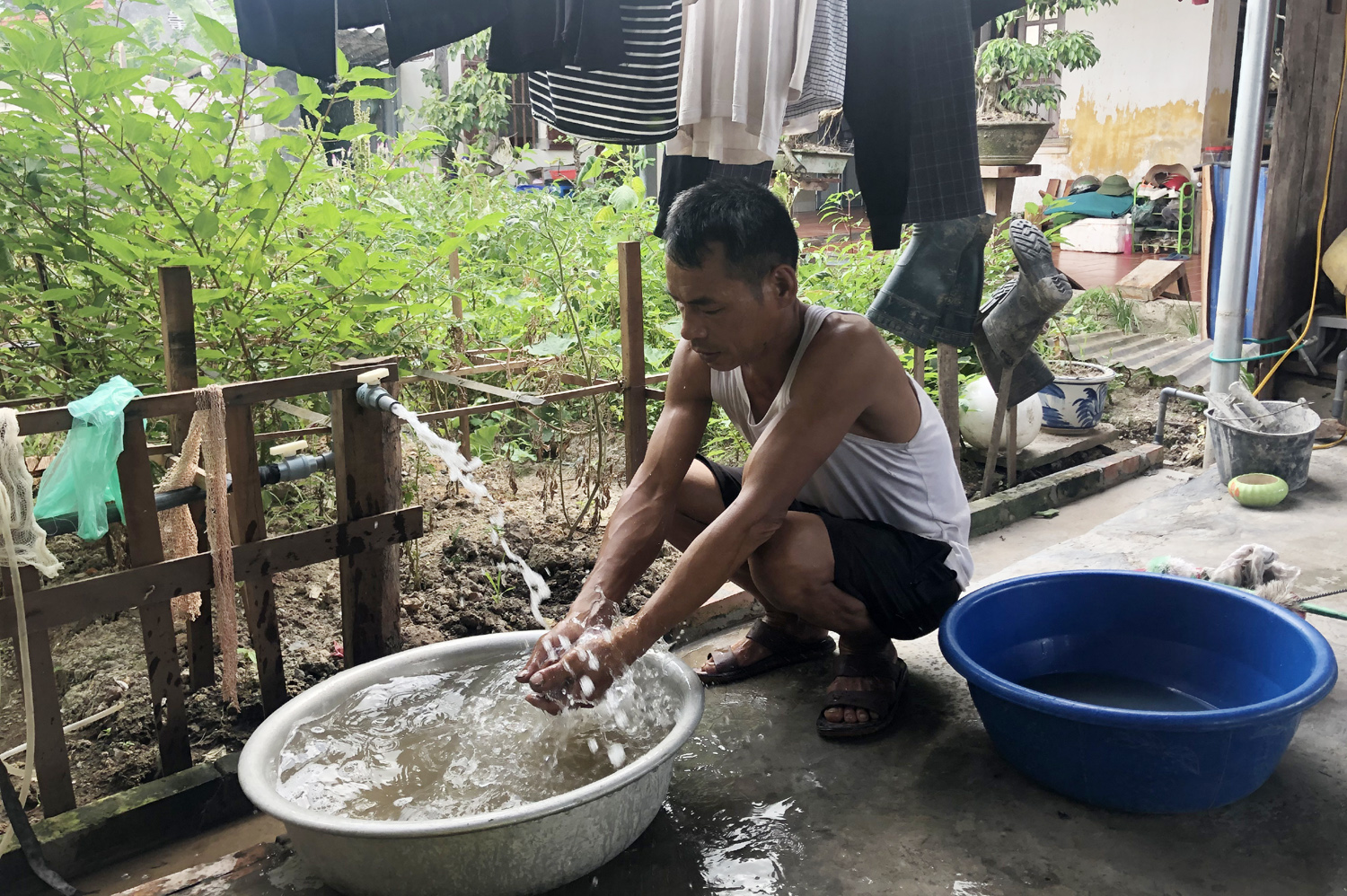 Gia đình ông Phạm Hự cũng như nhiều hộ dân khác ở thôn Hà, thôn Vị Khê (xã Liên Vị, TX Quảng Yên) nhiều năm phải sử dụng nguồn nước bơm trực tiếp từ kênh này.