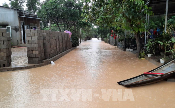 Mưa lũ kéo dài khiến nhiều tỉnh miền Trung ngập sâu trong nước. Ảnh: Hồ Cầu-TTXVN
