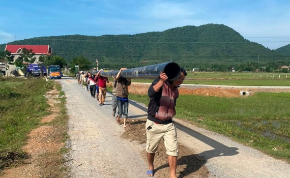 Trung tâm nước sạch và vệ sinh môi trường tỉnh Quảng Bình hỗ trợ lắp đặt đường ống dẫn nước mới tại công trình nước sạch cụm xã Tiến Hóa, Châu Hóa, Văn Hóa thuộc huyện Tuyên Hóa (Quảng Bình).