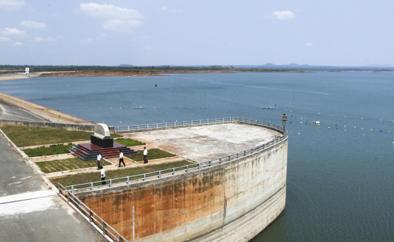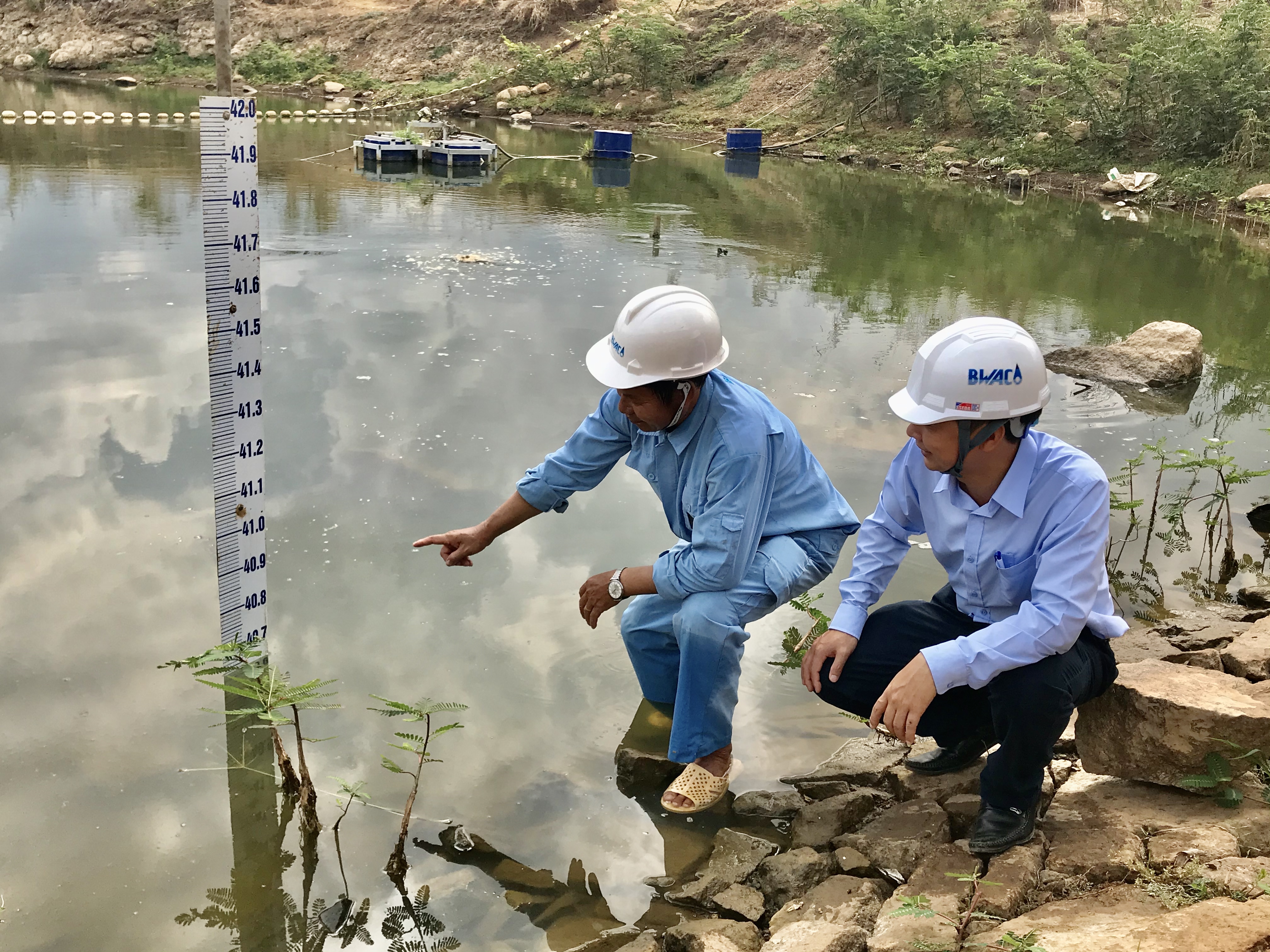 Kỹ sư BWACO kiểm tra mực nước tại hồ Đá Đen.