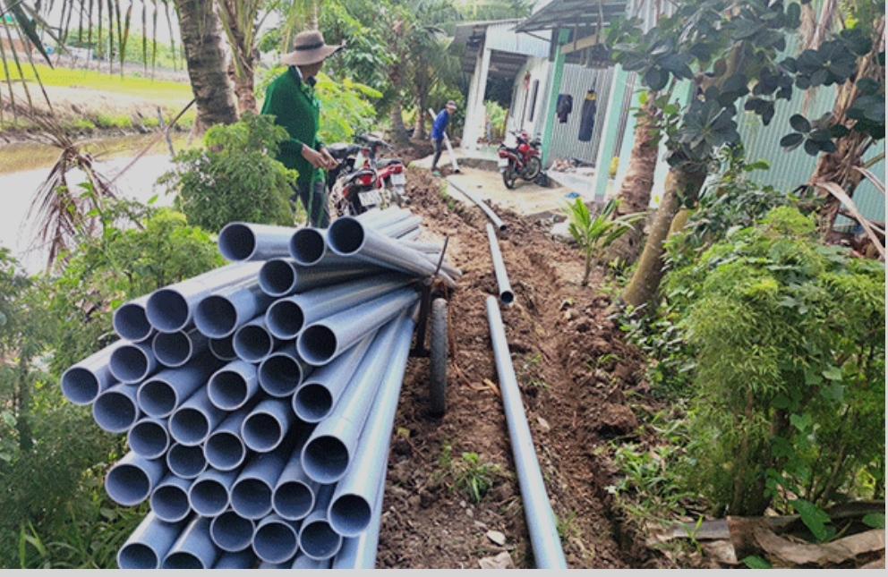 Ðể tạo điều kiện cho thêm nhiều hộ dân được sử dụng nước sạch, Trung tâm nước sạch và vệ sinh môi trường nông thôn thuộc Sở Nông nghiệp và Phát triển nông thôn TP Cần Thơ đang khẩn trương thi công mở rộng mạng đường ống cấp nước sạch đến cụm tuyến dân cư cặp theo kênh ông Tụng thuộc khu vực Thới Hòa B, phường Long Hưng, quận Ô Môn.