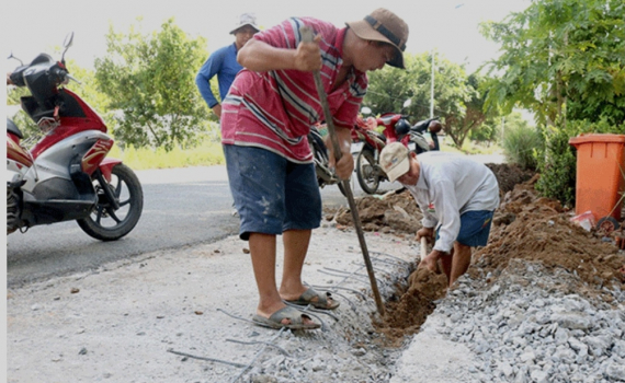 Thi công nâng cấp nước ống cấp nước sạch lên ống cỡ lớn tại phường Phước Thới, quận Ô Môn.