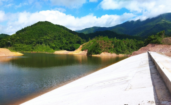 Bờ đập của công trình hồ chứa nước.