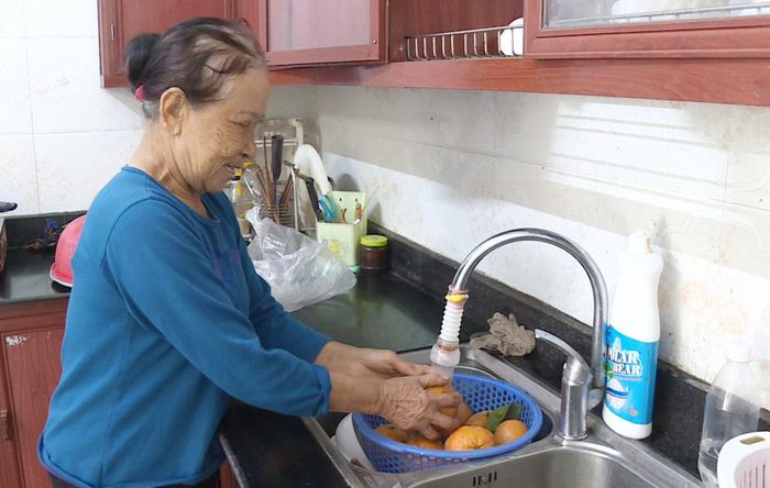 Hộ gia đình bà Vũ Thị Hỹ, thôn Đoàn Kết (xã Dương Huy, TP Cẩm Phả) đã được sử dụng nước sạch từ năm 2018.