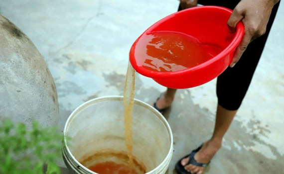 Người dân thiếu nước sạch phải dùng nước nhiễm phèn.