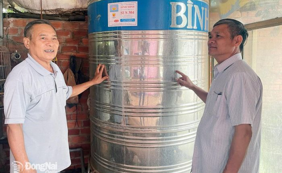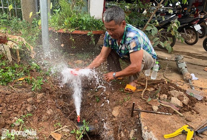 Hộ ông Đoàn Hùng Cường (ngụ KP.Suối Cả, TT.Long Giao, bên trái) chi khoảng 3 triệu đồng/tháng để mua nước. Ảnh: H.Lộc