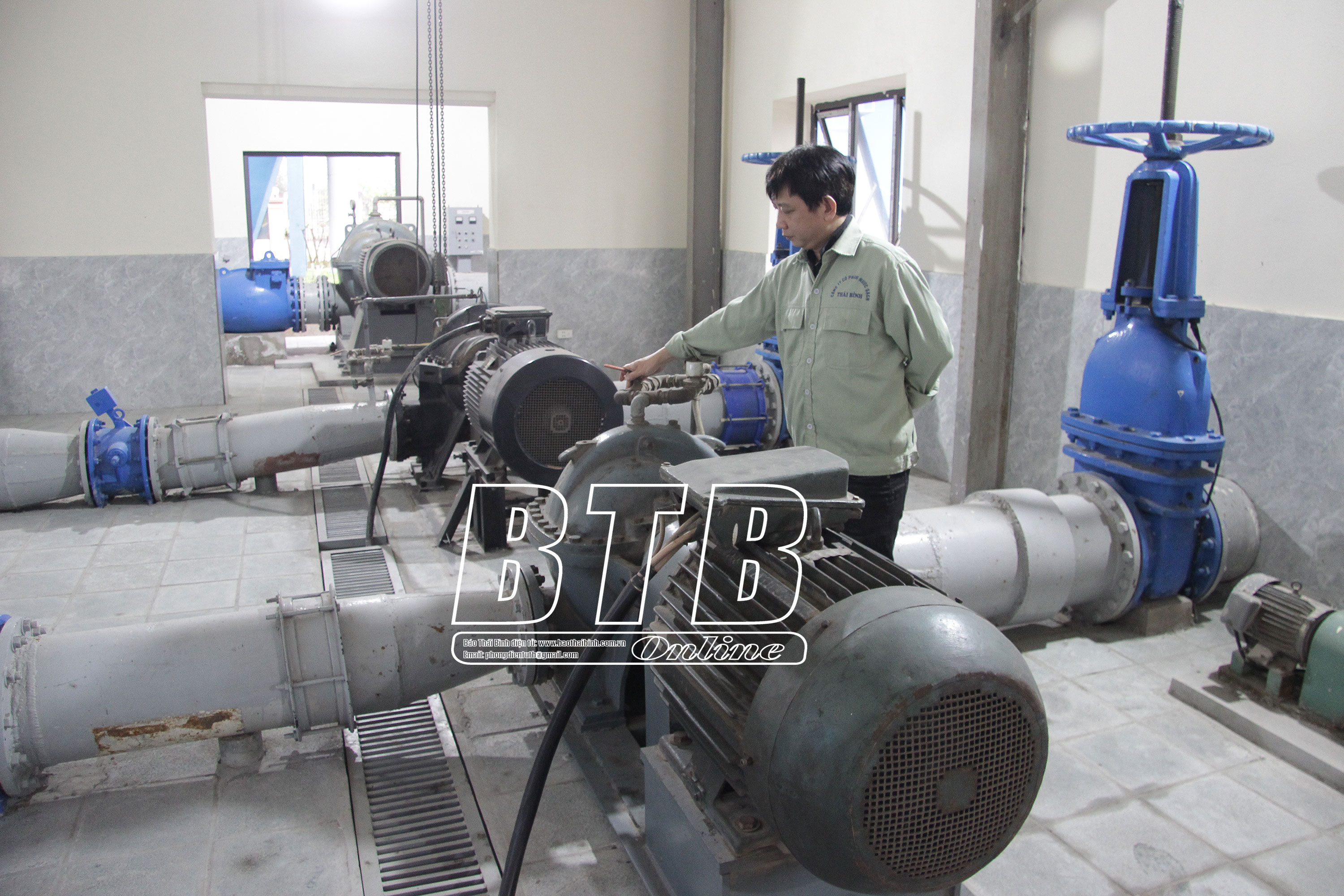 Công nhân Xí nghiệp nước Thành phố Thái Bình kiểm tra vận hành máy bơm nước.
