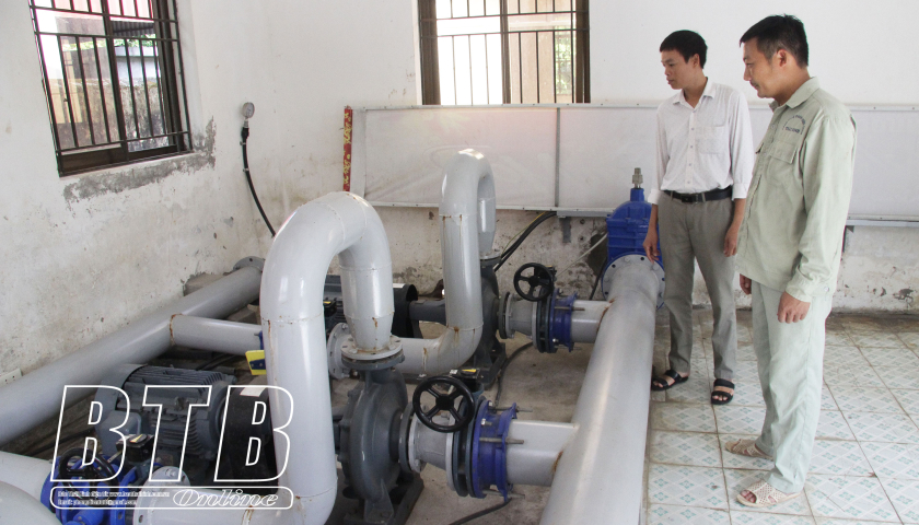 Công nhân Xí nghiệp nước Hưng Nhân kiểm tra hệ thống bơm.