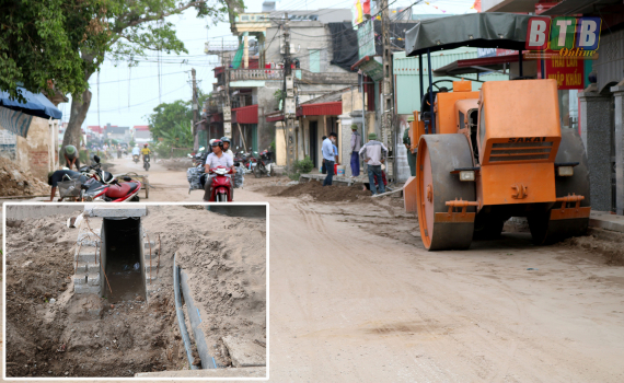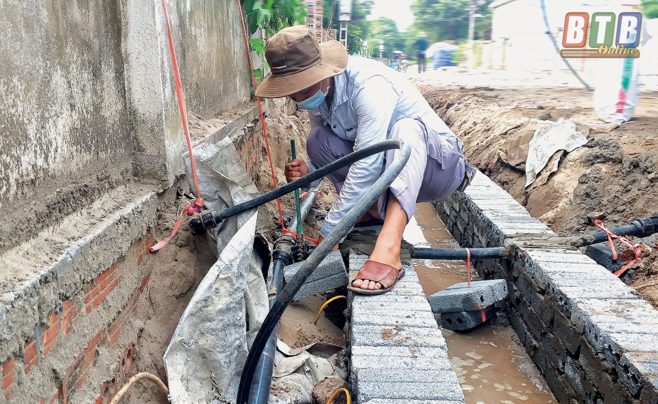 Doanh nghiệp phải tổ chức dịch chuyển đường ống dẫn nước khi địa phương làm đường giao thông (ảnh chụp tại xã Thụy Bình, huyện Thái Thụy).