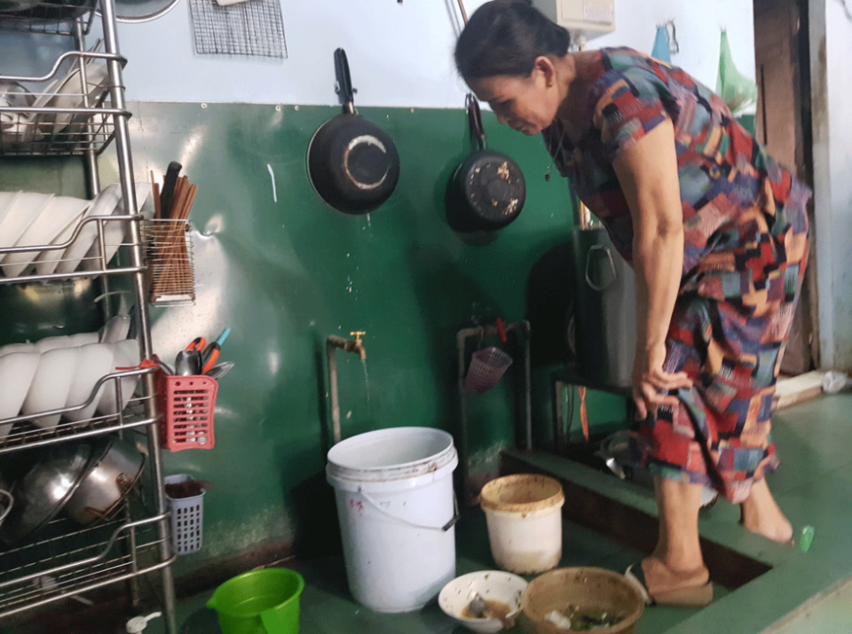 Ông Lâm Đức Trí cho hay, cả gia đình thay nhau trực chờ lúc có nước hứng trữ vào bồn chứa: "Mất nước mấy ngày nay, sau đó có nhưng không đều, khoảng 2- 3h sáng mới có, đến 6h sáng thì hết. Lượng nước chảy không mạnh, sinh hoạt khó khăn nhiều vì phải canh chừng nước, bể nhỏ, phải mở vòi hứng cả đêm. Có thông tin sắp tới sẽ cắt nước, gia đình phải dùng nước tằn tiện".