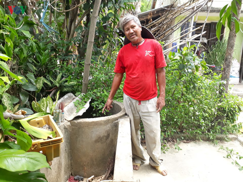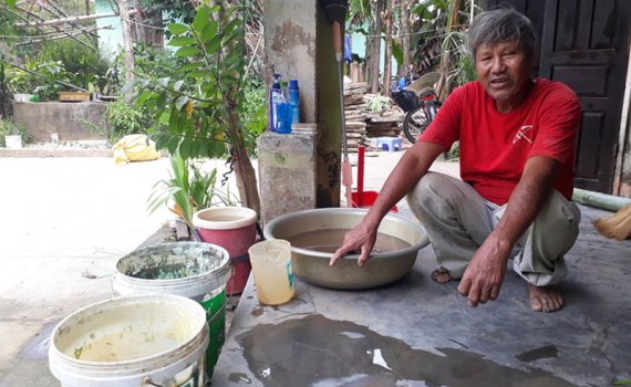 Không có nguồn nước sạch sinh hoạt, ông Đào phải dùng nước giếng bị nhiệm mặn, phèn.