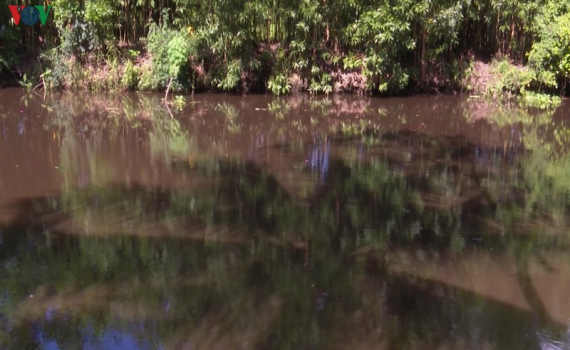 Bà Hồ Thị Hạnh sống gần Lâm trường cho biết: “Bây giờ nước còn hơi đỡ đỡ chứ mọi khi nó đen kịt, bốc mùi hôi thối rất khó chịu".