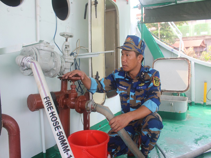 Tháp tùng cùng tàu 935 trên chuyến tàu chở nước ngọt đến người dân Bến Tre, Đại úy Nguyễn Văn Thương, Thuyền trưởng tàu 935 Lữ đoàn 125, Vùng 2 Hải quân, cho biết từ trước tết Nguyên đán đến nay, tàu của Lữ đoàn 125 đã chở bốn chuyến nước ngọt (1.000 khối nước) phục vụ miễn phí cho người dân các huyện Ba Tri, Bình Đại và Thạnh Phú, Châu Thành trước tình hình hạn hán, xâm nhập mặn đang diễn ra gay gắt.