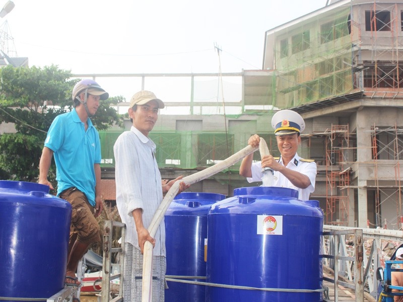 Tàu Hải quân cấp 3.000 khối nước ngọt cho người dân