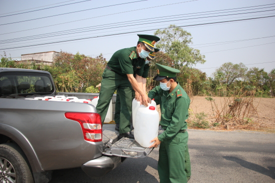 Hằng ngày, trước khi xuống địa bàn các ấp để nắm tình hình, Trung úy Lê Hiếu Trung, Đội trưởng Đội Kiểm soát hành chính, Đồn Biên phòng Tân Thành đã cùng đồng đội xuống bể chứa nước của đơn vị, bơm nước ngọt đầy những chiếc can nhựa (loại 30 lít) để vận chuyển đến cấp cho các hộ nghèo, gia đình chính sách tại những khu vực xa, khó đi lại đang thiếu nước ngọt để sử dụng. Đa số những công dân tại các gia đình này tuổi cao, sức yếu, không thể tự đi lấy nước ngọt tại các điểm mà lực lượng Biên phòng phối hợp với địa phương cấp. Vì thế, những can nước ngọt mà cán bộ, chiến sĩ Đồn Biên phòng Tân Thành mang đến dịp này đối với bà con vô cùng quý giá.