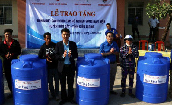 Tặng bồn chứa nước sạch cho hộ nghèo ven biển Hòn Đất