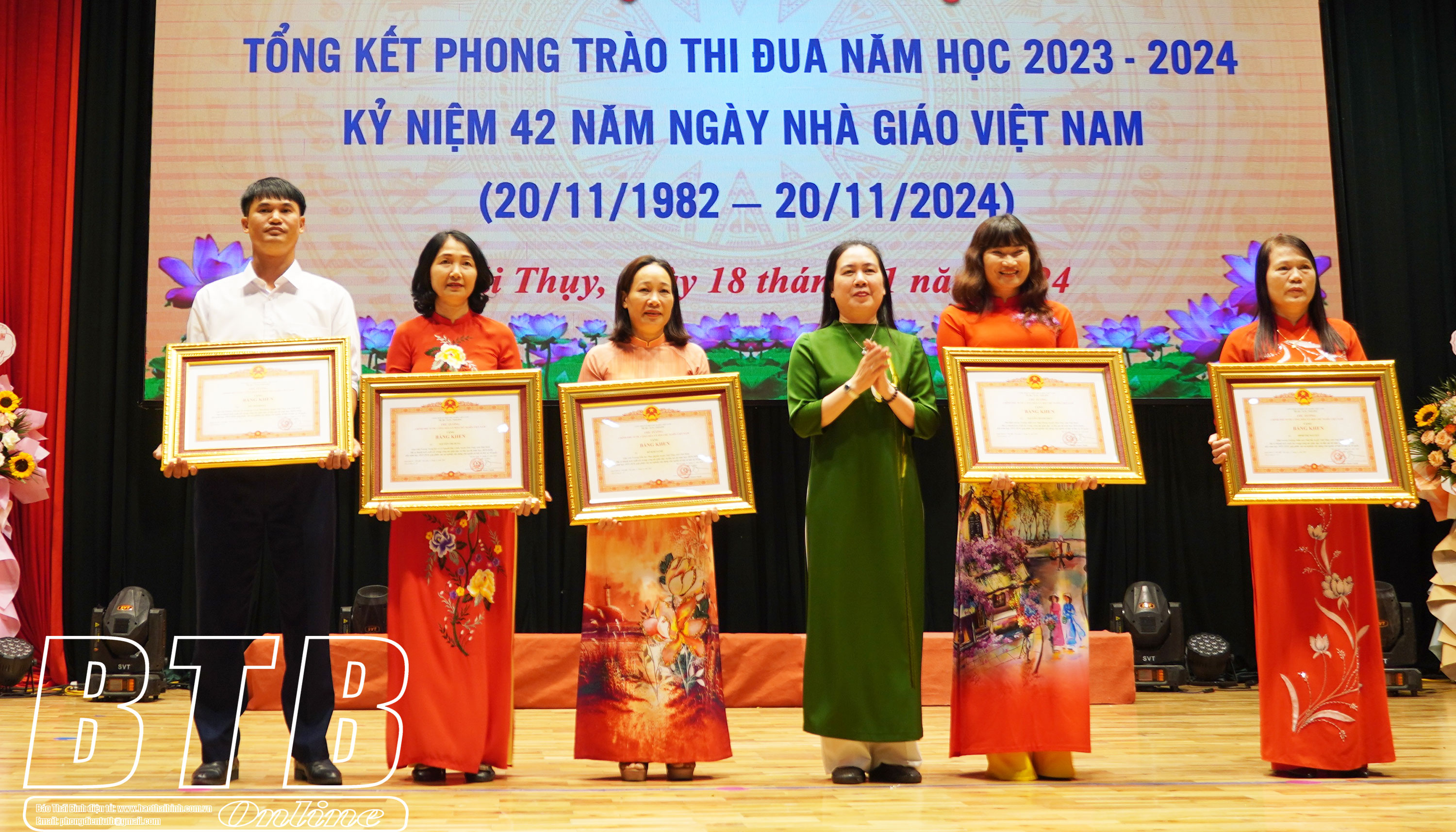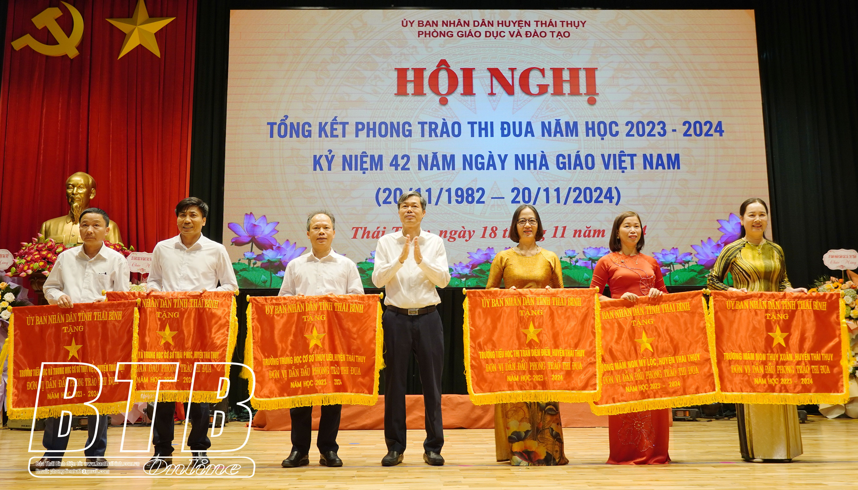 Chiều ngày 18/11, huyện Thái Thụy tổ chức hội nghị tổng kết phong trào thi đua năm học 2023-2024, kỷ niệm 42 năm ngày Nhà giáo Việt Nam (20/11/1982-20/11/2024).