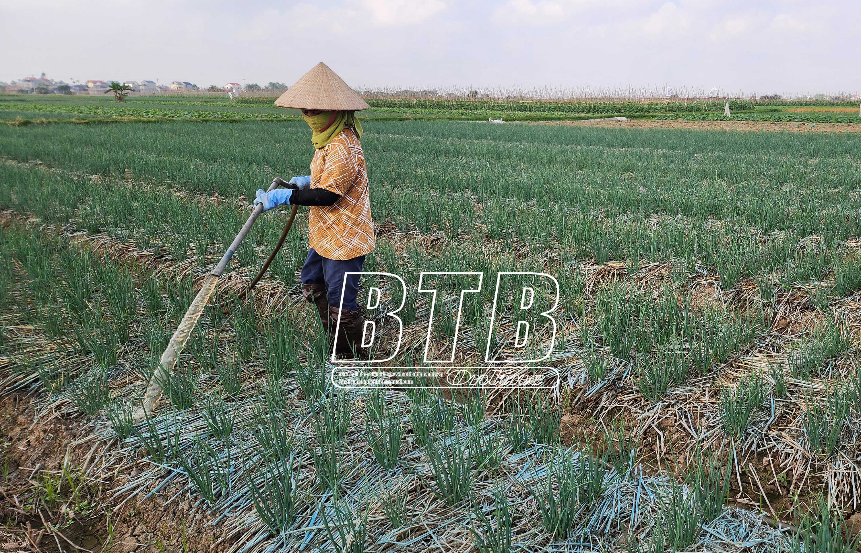 Nông dân xã An Tân (Thái Thụy) chăm sóc hành vụ đông.