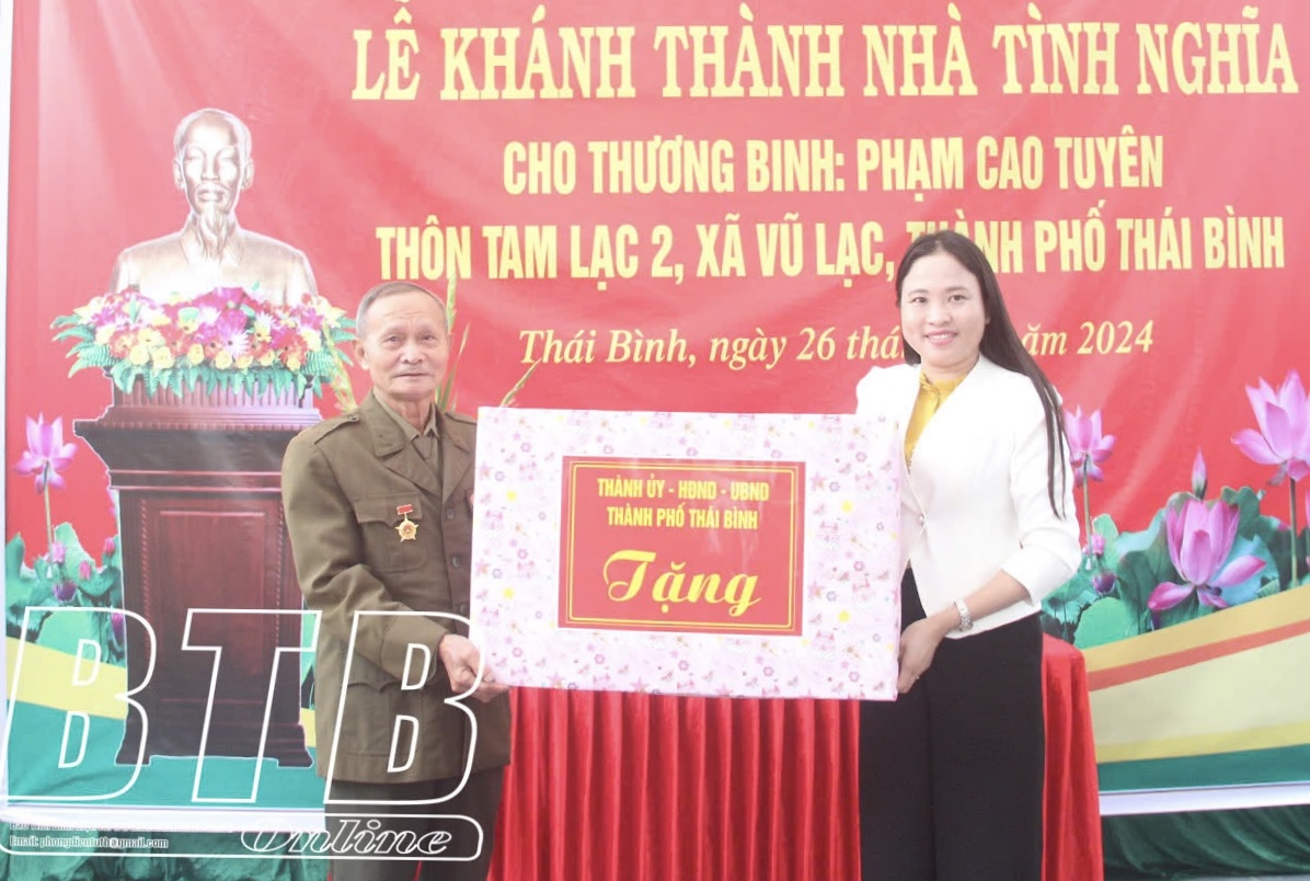 Nhân dịp này, đại diện cấp ủy, chính quyền, cơ quan quân sự và các ban, ngành, đoàn thể của thành phố, xã Vũ Lạc đã tặng những phần quà ý nghĩa, động viên gia đình thương binh Phạm Cao Tuyên.