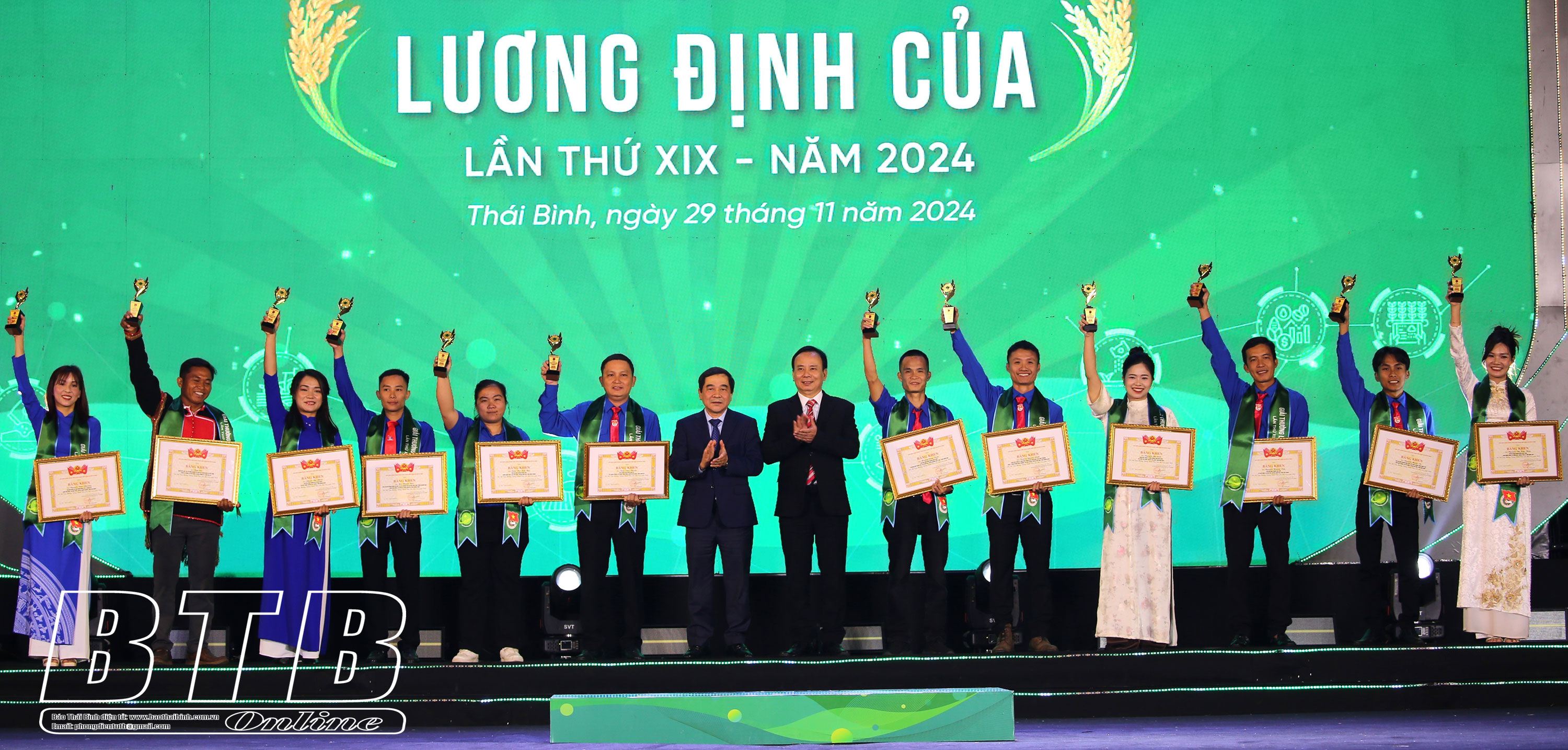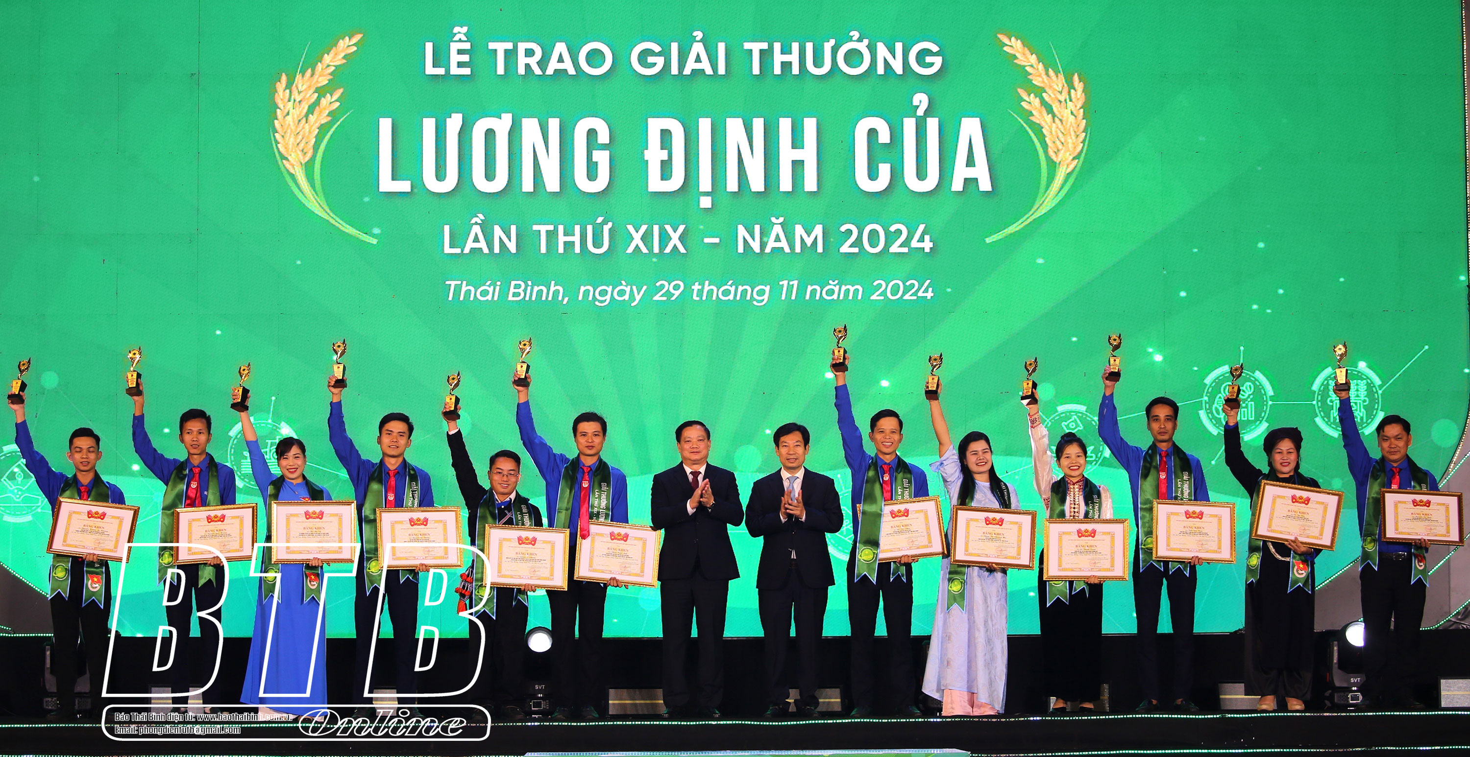 Tại lễ trao thưởng, các đồng chí lãnh đạo Đảng, Nhà nước, bộ, ban, ngành trung ương và lãnh đạo tỉnh Thái Bình đã trao bằng khen của Trung ương Đoàn và biểu trưng vinh danh giải thưởng cho 36 thanh niên đạt giải thưởng Lương Định Của lần thứ XIX và trao giải cuộc thi dự án khởi nghiệp thanh niên nông thôn năm 2024 cho 9 cá nhân là những thanh niên sản xuất kinh doanh giỏi trong lĩnh vực nông nghiệp, trong đó có 1 giải nhất, 2 giải nhì, 3 giải ba và 3 giải khuyến khích.
