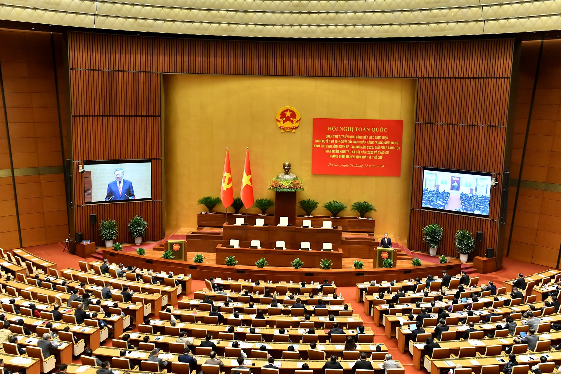 Ngày 1/12, tại Hà Nội, Bộ Chính trị, Ban Bí thư Trung ương Đảng tổ chức Hội nghị toàn quốc quán triệt, triển khai tổng kết việc thực hiện Nghị quyết số 18-NQ/TW của Ban Chấp hành Trung ương Đảng khóa XII; tình hình kinh tế-xã hội năm 2024, giải pháp tăng tốc phát triển kinh tế-xã hội năm 2025 và tháo gỡ những điểm nghẽn, nút thắt về thể chế. Tổng Bí thư Tô Lâm chủ trì và phát biểu chỉ đạo tại Hội nghị. Trân trọng giới thiệu toàn văn bài phát biểu.