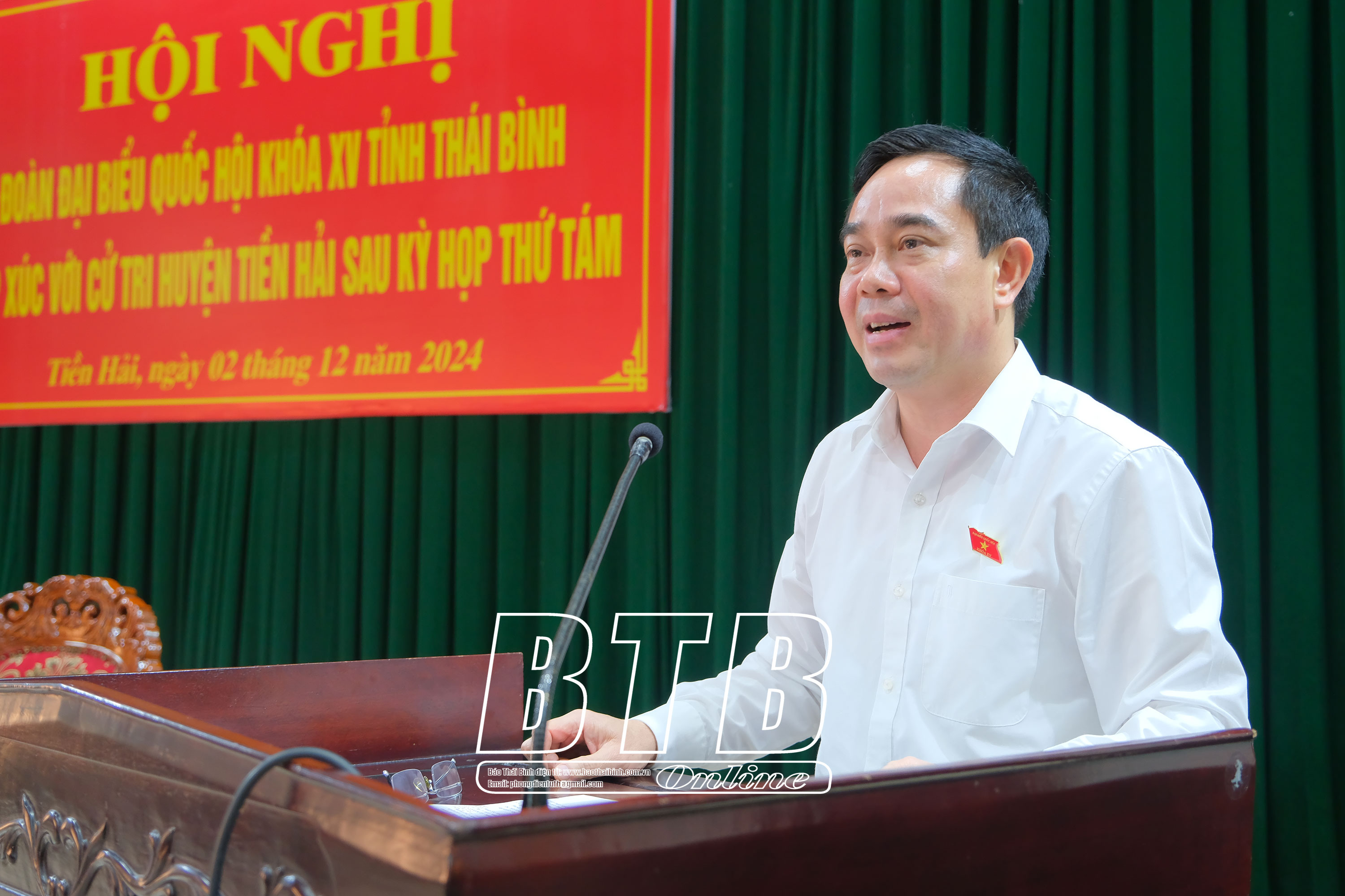 Đại diện Đoàn đại biểu Quốc hội tỉnh báo cáo với cử tri về kết quả kỳ họp thứ tám, Quốc hội khóa XV; kết quả giải quyết và trả lời ý kiến cử tri. Cử tri bày tỏ sự đồng thuận, thống nhất cao với kết quả kỳ họp; đánh giá cao hoạt động của Đoàn đại biểu Quốc hội tỉnh Thái Bình tại kỳ họp này.