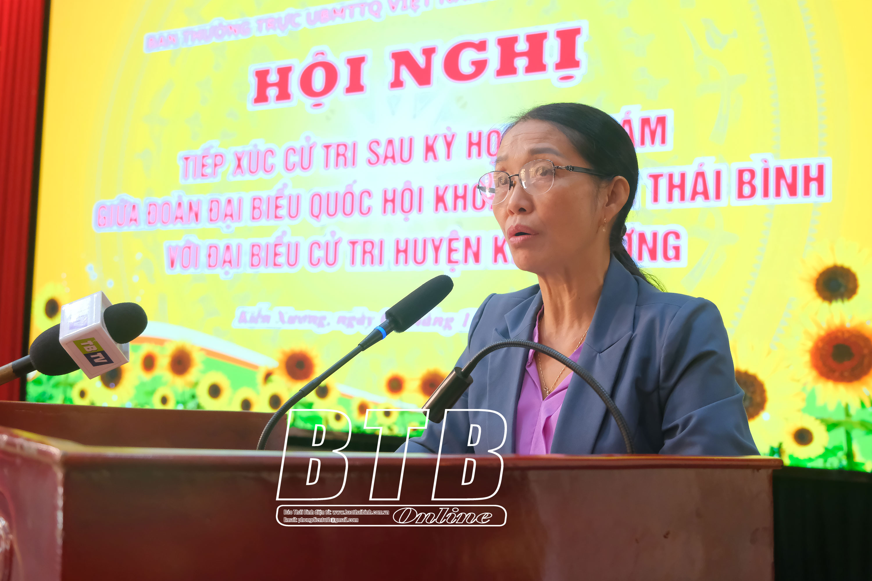 Cử tri thị trấn Kiến Xương phát biểu tại hội nghị.